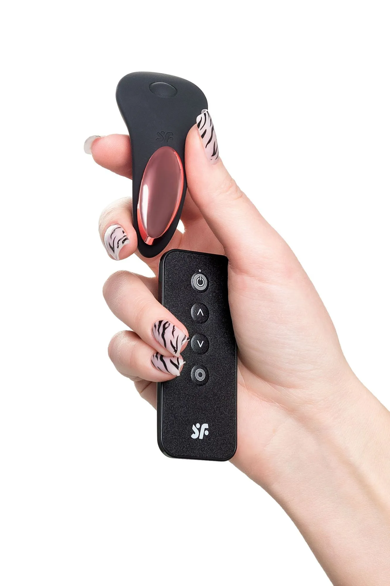 Little Sexy Secret - компактный и удобный вибростимулятор в трусики с дистанционным управлением. Клиторальный стимулятор крепится к трусикам с помощью магнита и надежно удерживается на месте. Каждый изгиб повторяет форму интимной зоны и прицельно стимулирует область клитора и входа во влагалище. Несмотря на миниатюрные размеры, игрушка обладает мощной низкочастотной глубинной вибрацией. Это значит что воздействие на эрогенные зоны может быть, как интенсивным, так и мягким. Преимуществом игрушки также является тихий мотор, что позволяет использовать вибромассажер незаметно от окружающих в любом месте. Дистанционное управление с помощью приложения или пульта расширяет возможности сексуальной игры. Передайте управление партнеру, даже если вы находитесь на разных уголках планеты. Специальное приложение Satisfyer Connect предлагает создать собственные уникальные плейлисты вибрации. Настраивайте их под любимые музыкальные треки. А защищенное соединение Bluetooth обеспечивает повышенную безопасность, предотвращая другие сигналы и гарантируя надежность коннекта. Высококачественный безопасный силикон и безупречный дизайн в оформлении насыщенного черного и золотого цвета вызывает удовольствие от каждого прикосновения. Не забудьте добавить лубрикант на водной основе для еще более комфортного использования. Little Sexy Secret не боится влаги и получать удовольствие с ним можно даже в воде. Очищать игрушку желательно до и после использования. Можно помыть в теплой воде с мылом или воспользоваться специализированным чистящим средством. Перед хранением вибромассажер необходимо хорошо просушить. Желательно хранить отдельно от других силиконовых изделий. 10 режимов интенсивности с возможностью управления с помощью кнопки на вибромассажере, пульта и через бесплатное приложение Satisfyer Connect, доступного для iOS и Android Надежный гарантия 15 лет Инновационные технологии – дистанционное управление с возможностью создания собственных уникальных ритмов. Безопасный и гигиеничный медицинский силикон Бесшумный – о шалостях никто не узнает Красивый и удобный – стильный дизайн и эргономичная форма Водонепроницаемость IPX7 – новые возможности в удовольствии в душе и ванной Магнитная USB-зарядка – время зарядки 90 минут, время работы 180 минут Страна бренда – Германия