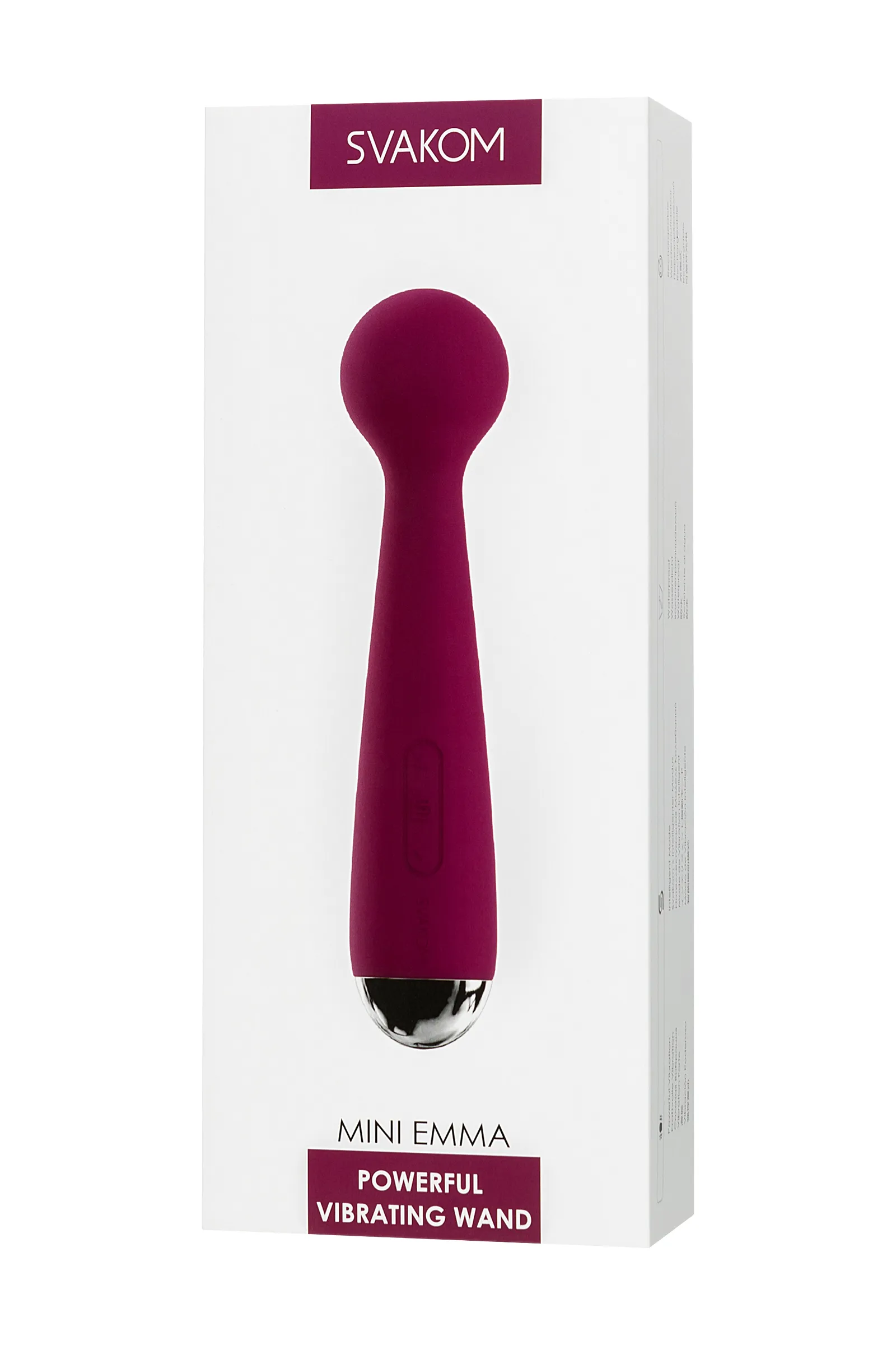 Svakom Mini Emma вдохновился успехом своего знаменитого коллеги по цеху Svakom Emma и решил стать его дублером. Он сохранил всю мощность Эммы, но сделал упор на компактность и мобильность. Предлагает качественную разрядку. Svakom Mini Emma оснащен мощным мотором, который распространяет вибрации ровно и глубоко, приводя к желанным оргазмам. Подходит для экспериментов. Режимы мини-вибратора можно комбинировать в 25 вариантах, знакомясь с многогранностью удовольствия. А можно подключить интеллектуальную программу и отдаться умной стимуляции — сначала вибратор устроит прелюдию из мягкой, дразнящей пульсации, затем перейдет к более настойчивым, ритмичным ласкам и доведет вас до финальной сцены. Умеет находить точку G. Головка сгибается под нужным углом, что без проблем помогает доставить наслаждение капризной зоне G. Справляется с ролью искусного массажиста. С этим гаджетом можно забыть о затекшей шее, спине и усталых ножках — сильные вибрации приводят в тонус каждый сантиметр тела. Не боится воды. Корпус девайса водонепроницаем, поэтому не придется отказывать себе в особой расслабляющей ванне или бодрящем душе. Любит путешествовать. Этот малыш легко умещается в женской сумочке и не смущает своим видом строгих контролеров. А его тихий мотор позволяет наслаждаться маленькими шалостями, оставаясь незамеченной. Мини-вибратор Svakom Mini Emma — удовольствие в удобном формате. Материал: безопасный для тела силикон Режимы вибрации: 7 Количество скоростей: 5 Размер: 3,8 см × 16,5 см Заряжается: USB Время зарядки: 1,5 часа Используемое время: 2 часа Водонепроницаемость: IPX4 защита от брызг Цвет: фиолетовый Интерфейс: Bluetooth В комплекте: Вибратор Mini Emma, мешочек для хранения, зарядный кабель USB, гарантийный талон, руководство. Страна бренда: США