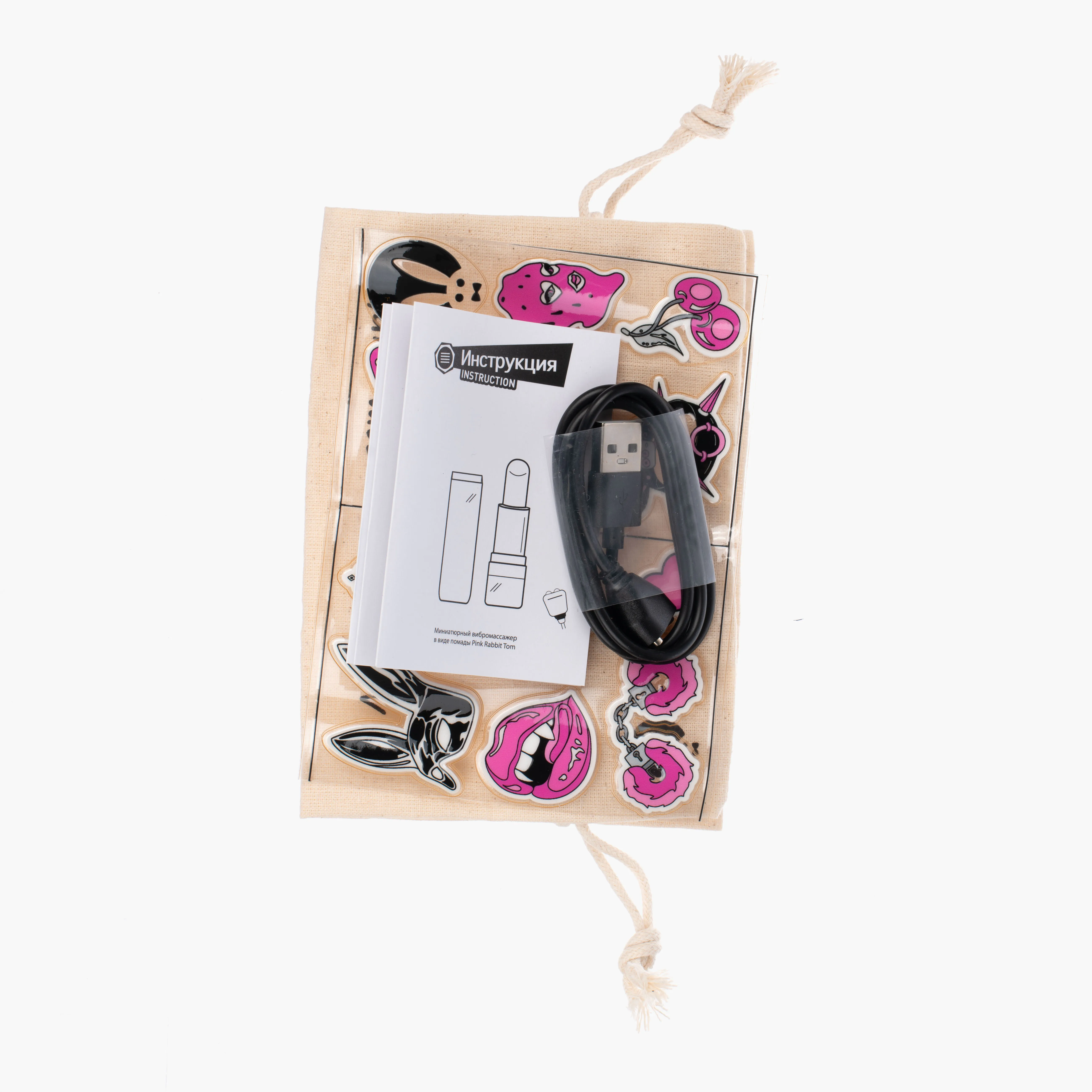 —Миниатюрный вибромассажер в виде помады Pink Rabbit Tom из жидкого силикона, черный