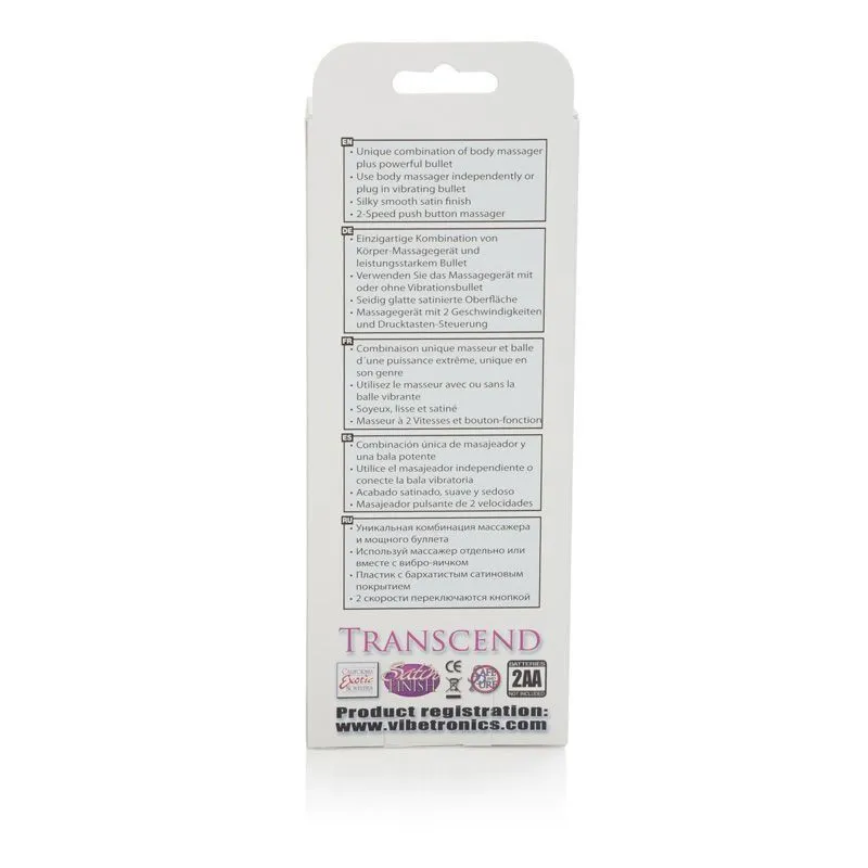 10-Function Transcend - это универсальная игрушка, состоящая из массажера и виброяйца. К массажеру с 2 режимами вибрации при желании можно подсоединить вибропулю, чтобы использовать ее для точечной стимуляции эрогенных зон. Вы можете использовать его в сексуальных играх со своим партнером, чтобы разнообразить свои любовные игры и получить новые ощущения. Массажер также можно использовать и для обычного расслабляющего массажа рук, ног или шеи.