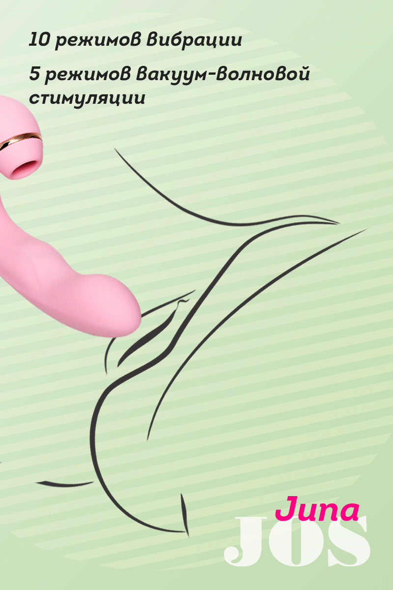 JUNA Вибратор с функцией вакуумной стимуляции клитора JOS JUNA - инструмент для искусной игры на струнах вашей чувственности и экстаза. Настоящая находка для тех, кому нужно все и сразу! Необычный футуристичный дизайн сочетает в себе множество вариантов для удовольствия. JUNA способна удовлетворить самые непристойные желания и гарантирует оргазм за считанные минуты. Вакуум-волновой стимулятор работает в 5 режимах - от нежного до самого мощного. Достаточно приложить раструб к клитору и досчитать до 100, чтобы JUNA унесла вас к вершинам самого мощного и яркого оргазма. Погружная часть вибратора дополнит ваше путешествие к удовольствию своей изогнутой головкой с мощным мотором. Зона G получит активную стимуляцию благодаря 10 режимам вибрации. Пульсирующий шарик в средней части ствола обладает 5 режимами пульсации. JUNA – тройная стимуляция для оргазма и сквирта взрывной силы. элегантный розовый цвет и высококачественный бархатистый силикон заряжается от USB 10 режимов вибрации 5 вакуум-волновых режимов 5 режимов пульсации шарика длина 15 см, рабочая длина 10 см, диаметр 3,5 см время работы 1 час время зарядки 1,5 часа