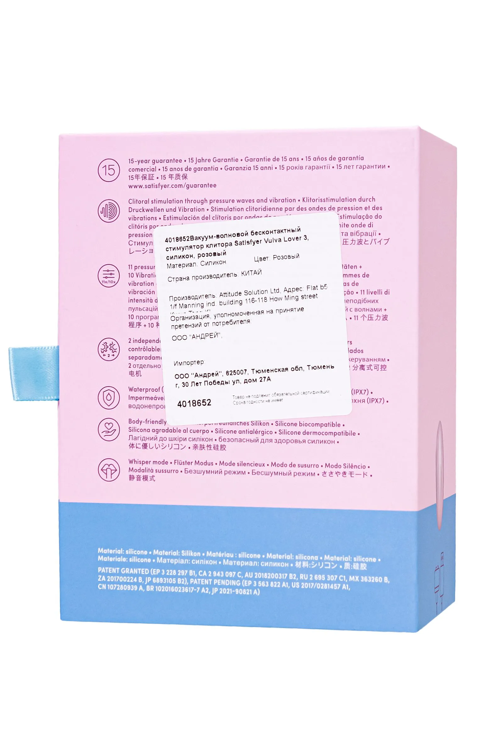 Погрузитесь в удовольствие и наслаждение с клиторальным стимулятором Vulva Lover 3 от Satisfyer – идеальным спутником для ваших путешествий. Этот стильный и элегантный розовый стимулятор клитора обещает привнести в вашу интимную жизнь невероятные ощущения и мгновения радости. Независимо от вашего опыта, Vulva Lover 3 станет вашим верным компаньоном, предлагая уникальное сочетание двух захватывающих функций, чтобы подарить вам максимальное блаженство. Встречайте воздушную пульсацию Air Pulse и интенсивные волны вибрации, которые будут уносить вас на волне экстаза каждый раз. Новейшая технология Air Pulse обеспечивает бесконтактную стимуляцию клитора, раскрывая перед вами удивительный мир женского оргазма. С 11 уровнями интенсивности вакуумно-волновой стимуляции и 10 программами вибрации, от мягкой до интенсивной, у вас есть полный контроль над вашими сексуальными наслаждениями. Используйте интуитивное управление с помощью трех кнопок на корпусе и наслаждайтесь полным раскрытием вашей сексуальности и укреплением интимного здоровья с помощью Vulva Lover 3. Удобная форма этого стимулятора станет вашим идеальным попутчиком в любых путешествиях. Самый компактный вибратор Air Pulse в своем классе, всего 11 см в длину, легко помещается в вашу сумку или косметичку. Изготовленный из безопасного для тела силикона, Vulva Lover 3 обеспечивает мягкость и комфорт при каждом использовании. Он также водонепроницаемый по стандарту IPX7, позволяя вам наслаждаться им во время романтического душа или расслабляющей ванны. Ваши фантазии станут реальностью, когда вы позволите Vulva Lover 3 удовлетворить ваши самые сокровенные желания, независимо от вашего местоположения. Откройте себе дверь к непревзойденному блаженству и удовлетворению с помощью Vulva Lover 3 от Satisfyer - вашим надежным партнером в достижении сексуального благополучия. Особенности: Возможность одновременного воздействия на клитор воздушной пульсацией и вибрацией. Управление кнопками на корпусе, комфортно лежит в руке. 10 режимов вибрации и 11 режимов волновой стимуляции. Нежно-розовый цвет и мягкий, эластичный силикон без запаха, аллергенов и вредных веществ для здоровья. Компактный размер для удобного путешествия. 100% водонепроницаемость - IPX7. Перезаряжаемый с помощью USB-кабеля.