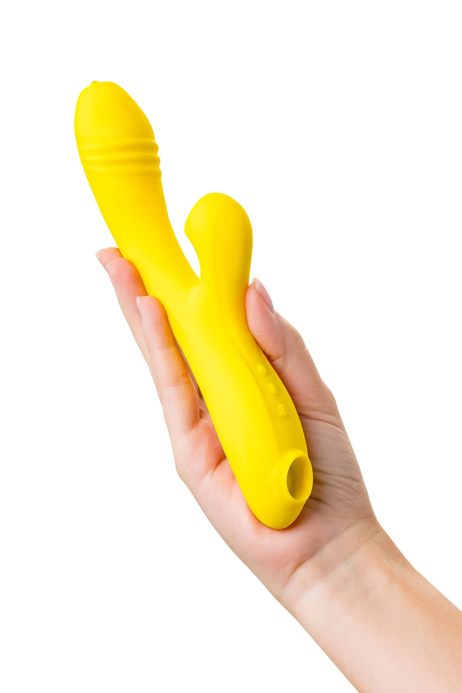 MIA знает о Твоих желаниях все! Этот водонепроницаемый технологичный вибратор объединил в себе функционал сразу нескольких девайсов. Он имеет не только миловидную внешность, нежный солнечный цвет и бархатистую поверхность, но и отлично справляется со стимуляцией внешних и внутренних эрогенных зон. В нем 3 мотора, которые подарят Тебе 10 режимов вибрации основной части, 10 режимов вибрации «язычка» и 7 вариантов вакуумных стимуляций. MIA легко управляется нажатием кнопок, Тебе лишь остается выбрать функционал под настроение и понравившийся режим. Никогда еще чувственное наслаждение не было столь продуманным и качественным, поэтому смело отправляйся с технологичным MIA в головокружительное путешествие к новым сексуальным высотам!