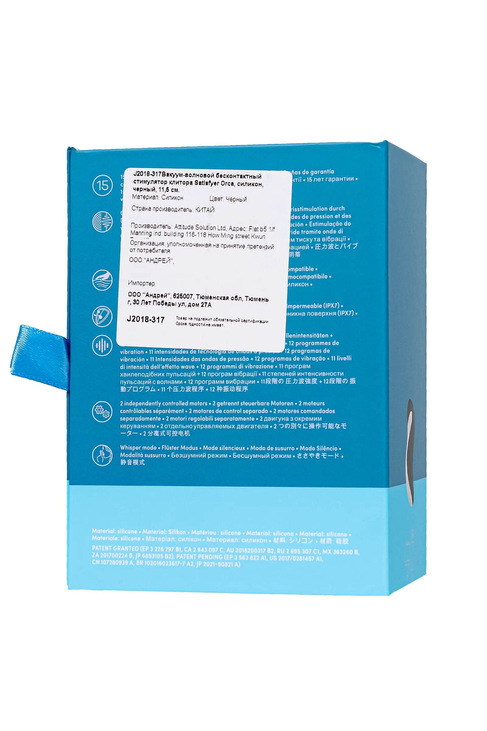 • 100% водонепроницаемый - IPX7 обеспечивает легкость в уходе и очистке делает использование Satisfyer Orca максимально удобным.