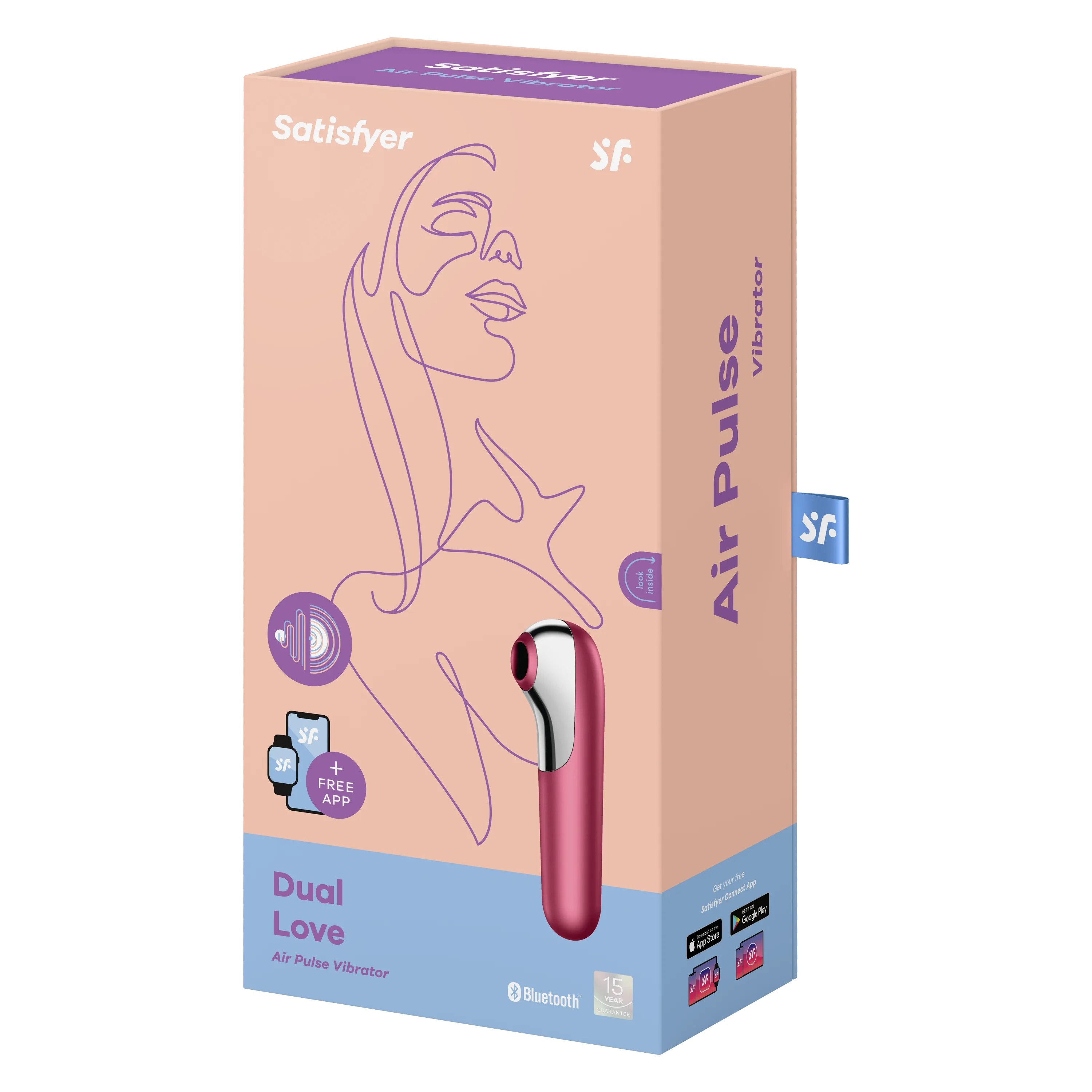 Вакуумный вибромассажер Satisfyer DUAL LOVE сочетает в себе функции вибратора и вакуумного стимулятора. Имеет 10 режимов вибрации и 11 режимов вакуумной стимуляции, которые могут работать как вместе, так и раздельно. Работает от аккумулятора, и заряжается от магнитного зарядного устройства (идет в комплекте). Вакуумный стимулятор оснащен системой Bluetooth, и управление может осуществляться через бесплатное мобильное приложение Satisfyer, либо кнопками на устройстве. Общая длина стимулятора составляет 16 см. Внутренний диаметр насадки- 1,7 см. Водонепроницаемый, соответствует международным стандартам IPX7.