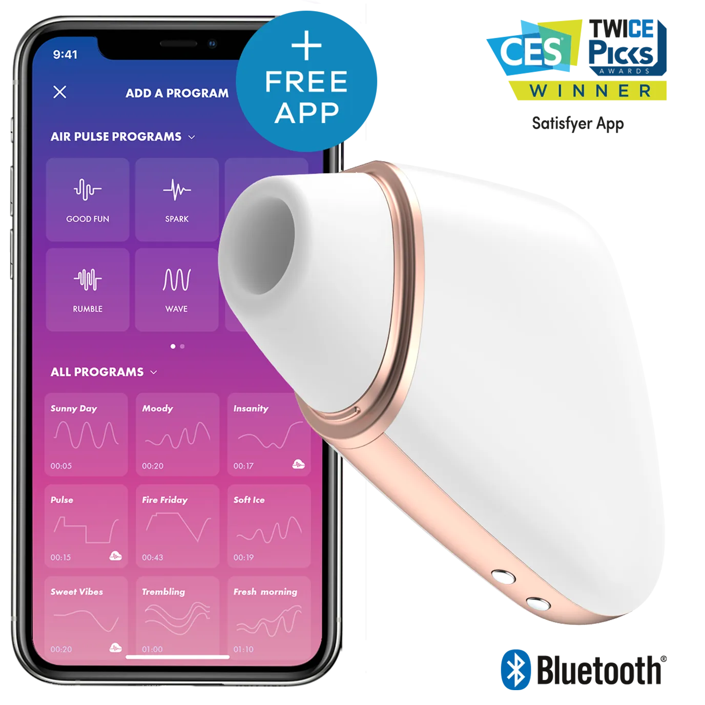 Вакуумный вибромассажер Satisfyer Love Triangle сочетает в себе функции вибратора и вакуумного стимулятора. Имеет 10 режимов вибрации и 11 режимов вакуумной стимуляции, которые могут работать как вместе, так и раздельно. Работает от аккумулятора, и заряжается от магнитного зарядного устройства (идет в комплекте). Вакуумный стимулятор оснащен системой Bluetooth, и управление может осуществляться через бесплатное мобильное приложение Satisfyer, либо кнопками на устройстве. Общая длина стимулятора составляет 10 см. Внутренний диаметр насадки- 1,5 см. Водонепроницаемый, соответствует международным стандартам IPX7.
