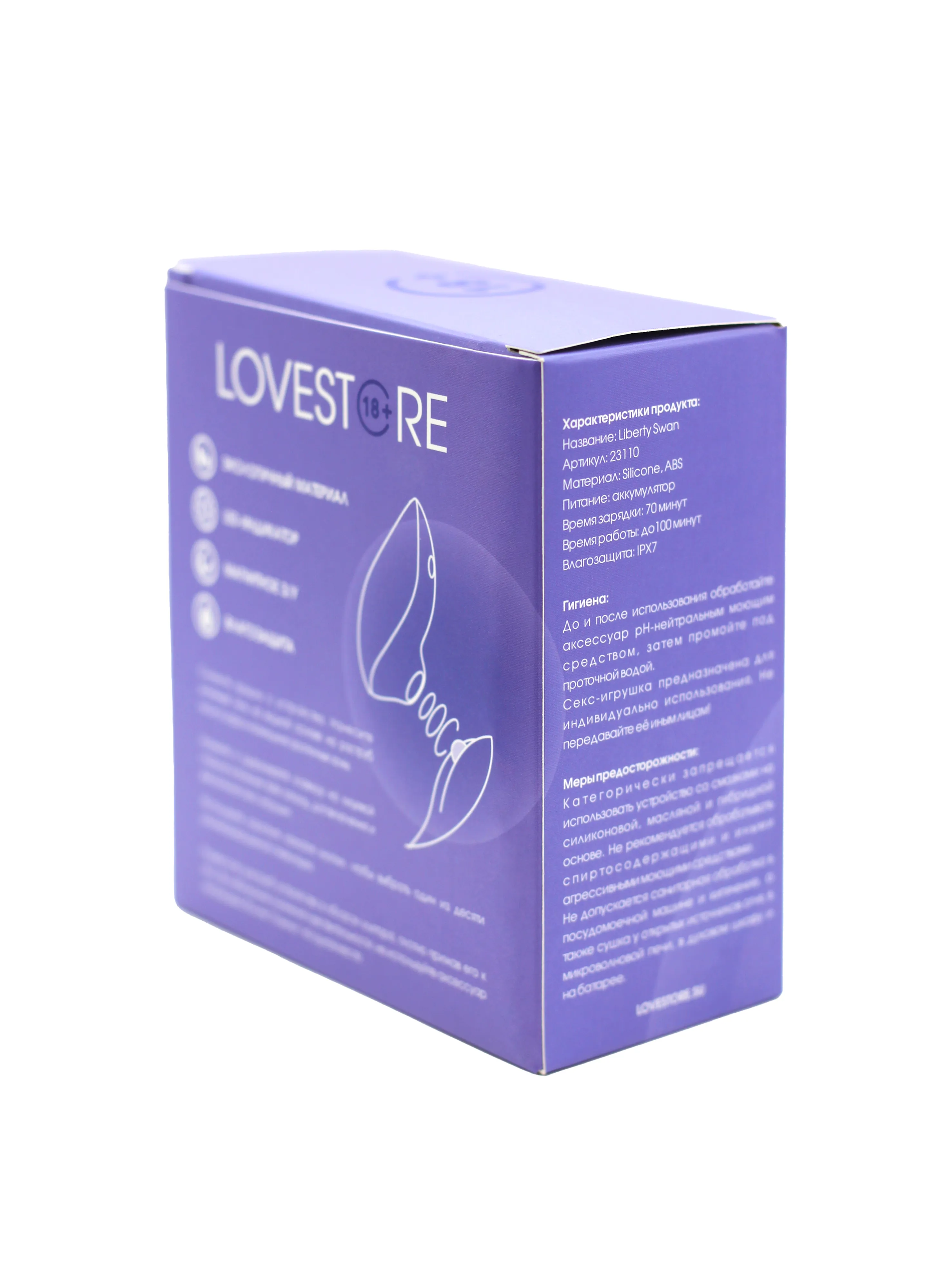 Стильная упаковка c блистером. Силиконовый корпус, крышка, овальная форма раструба обеспечивает максимальную анатомическую совместимость, подходит для низкой и средней чувствительности, магнитная зарядка, IPX7, инструкция на русском. Длина - 9,5 см, ширина - 4 см, высота с крышкой - 8,2 см, внутренний размер раструба (отверстия) 1,6смх1,1см