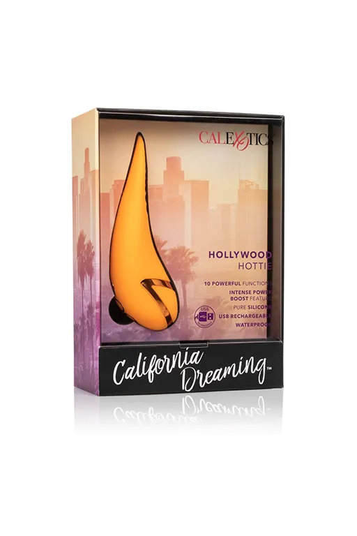 Вибромассажер Hollywood Hottie – перезаряжаемый компактный мульти скоростной универсальный вибратор из бесшовного материала с дополнительной обработкой. Эта модель имеет эргономичный дизайн и функцию «мерцающий язычок» и функцию Power Boost, обеспечивающую мгновенный переход к супермощной вибрации.