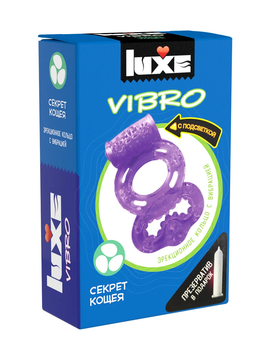 —Виброкольцо LUXE VIBRO Секрет Кощея + презерватив, 1 шт, фиолетовый, 18 см