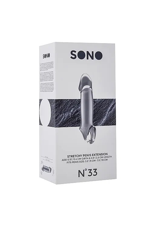 No.33 - Stretchy Penis Extension – насадка закрытого типа для небольшого увеличения длины и обхвата полового члена с кольцом для фиксации на мошонке. Она имеет округлую головку для оптимальной стимуляции. Насадка произведена из высококачественного мягкого материала.