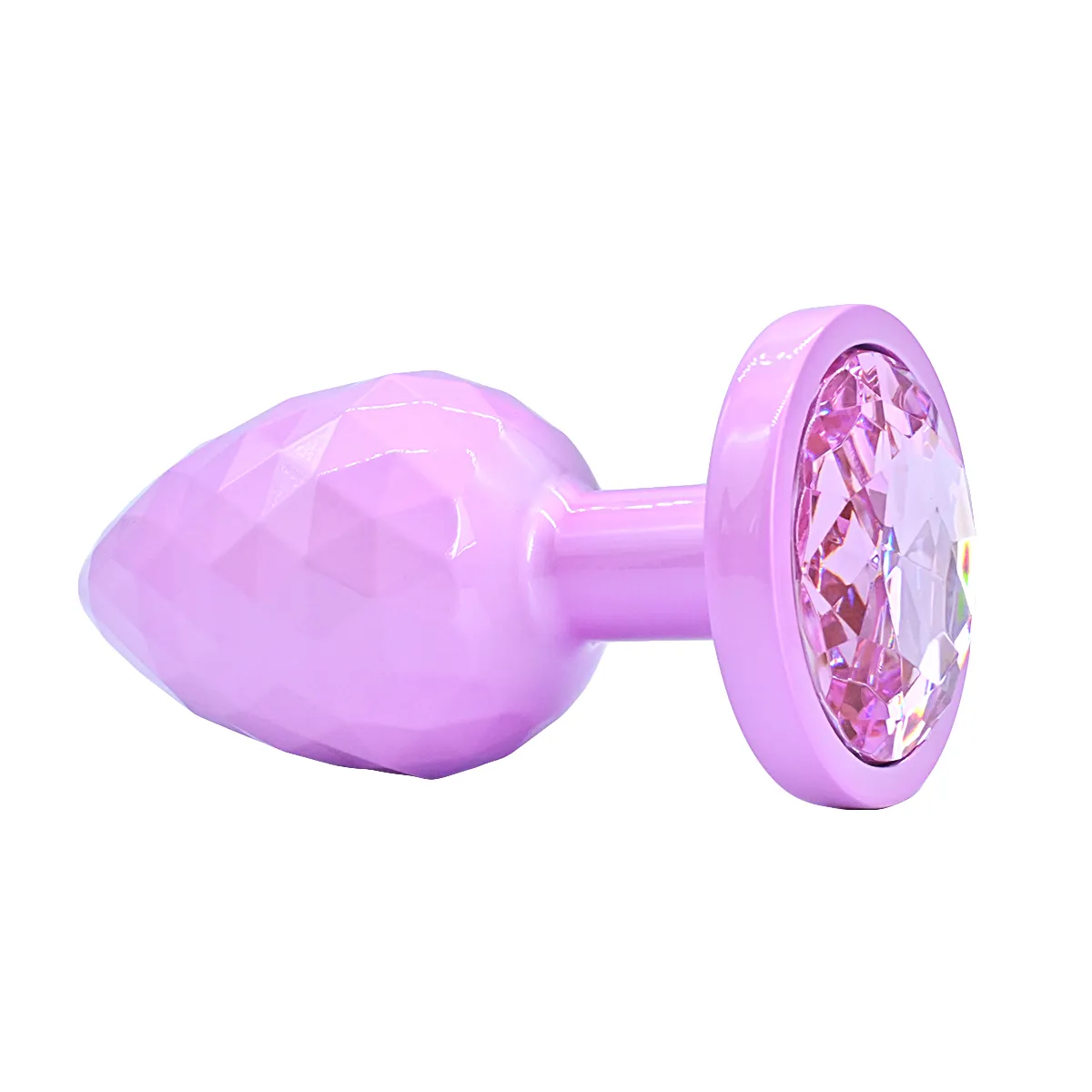 Литая анальная пробка имеет конусообразную форму. Гладкая фактура шлифованного металла создается вручную. Легкий и прочный алюминиевый сплав гарантирует долговечность и гигиеничность. Крупный граненый кристалл в основании имеет специальное светоотражающее покрытие дна для усиления блеска и более яркого и красочного вида.