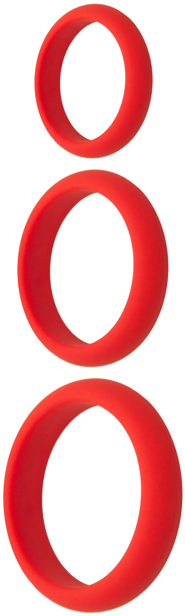 Набор состоит из 3 эрекционных колец разного диаметра, выполненных в красном цвете. Кольца изготовлены из мягкого и эластичного силикона, поэтому Вы не почувствуете дискомфорта во время их использования. Кольца препятствуют оттоку крови от члена, что приводит к усилению эрекции. Помимо своей основной функции, это кольцо может привнести в интимную близость пикантность и остроту, усиливая ощущения мужчины. Подберите подходящий для Вас размер и поразите свою вторую половинку продолжительностью полового акта!