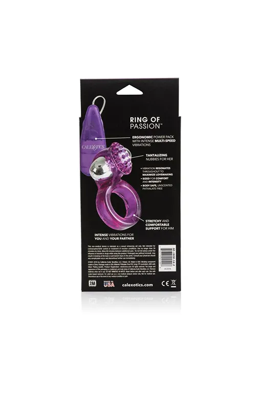 Ring Of Passion - эрекционное кольцо, предназначенное для поддержания эрекции и стимуляции. Оно изготовлено из эластичнго, гладкого, не содержащего фталаты ПВХ пластика. Съемная вибропуля управляется с помощью выносного пульта управления и обеспечивает многоскоростную вибрацию.