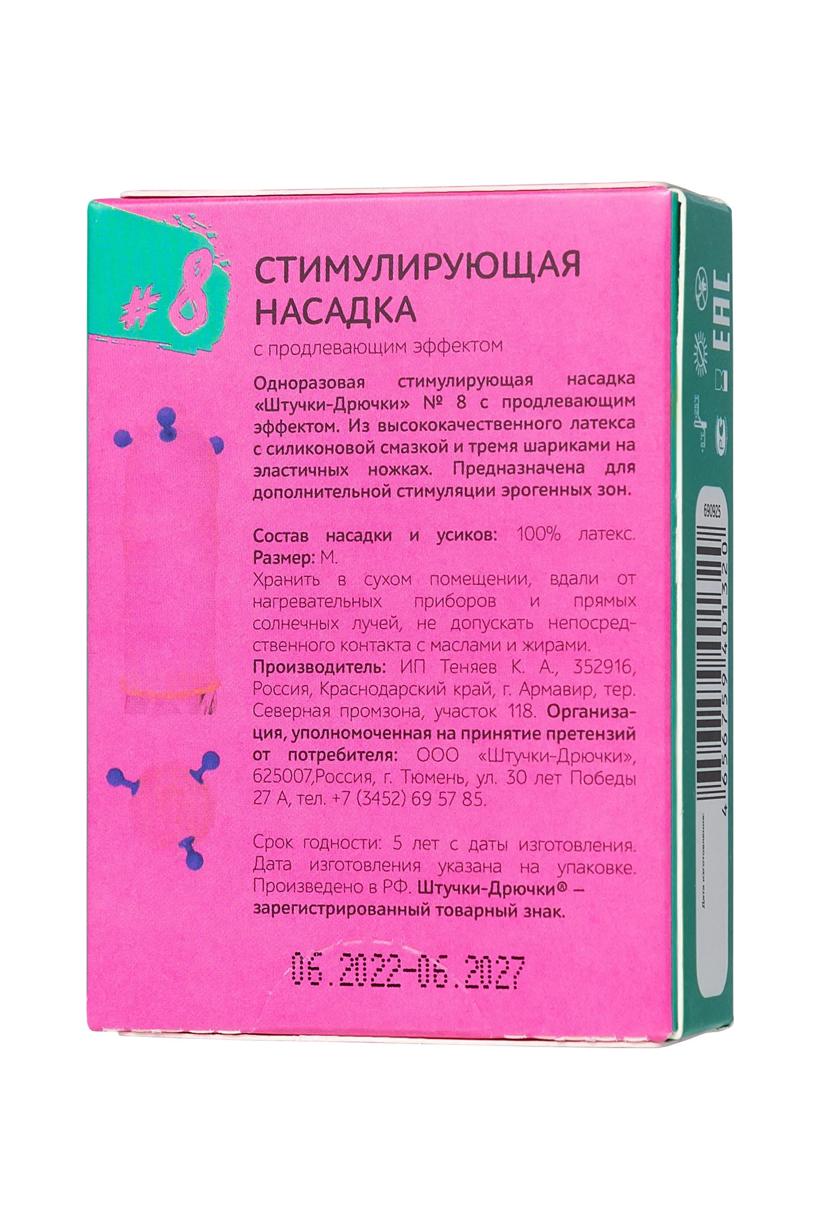 Чтобы секс не становился рутиной, в интимную близость необходимо вносить яркие вспышки. Такой вспышкой вполне может стать стимулирующая насадка с шариками №8 с продлевающим эффектом от бренда «Штучки-Дрючки». Ведь у этой насадки есть особый дар — возбуждать партнёршу своими эластичными шариками, а смазка с пролонгирующим эффектом подарит больше времени для эксперемента.