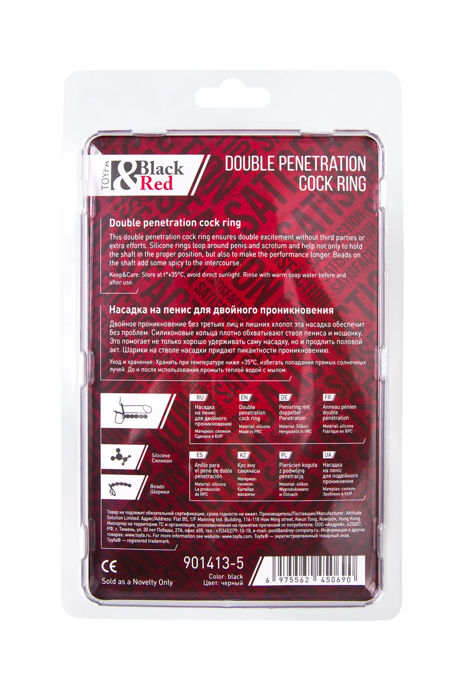 Насадка на пенис для двойного проникновения Black&Red by TOYFA, силикон, черная, 19,5 см
