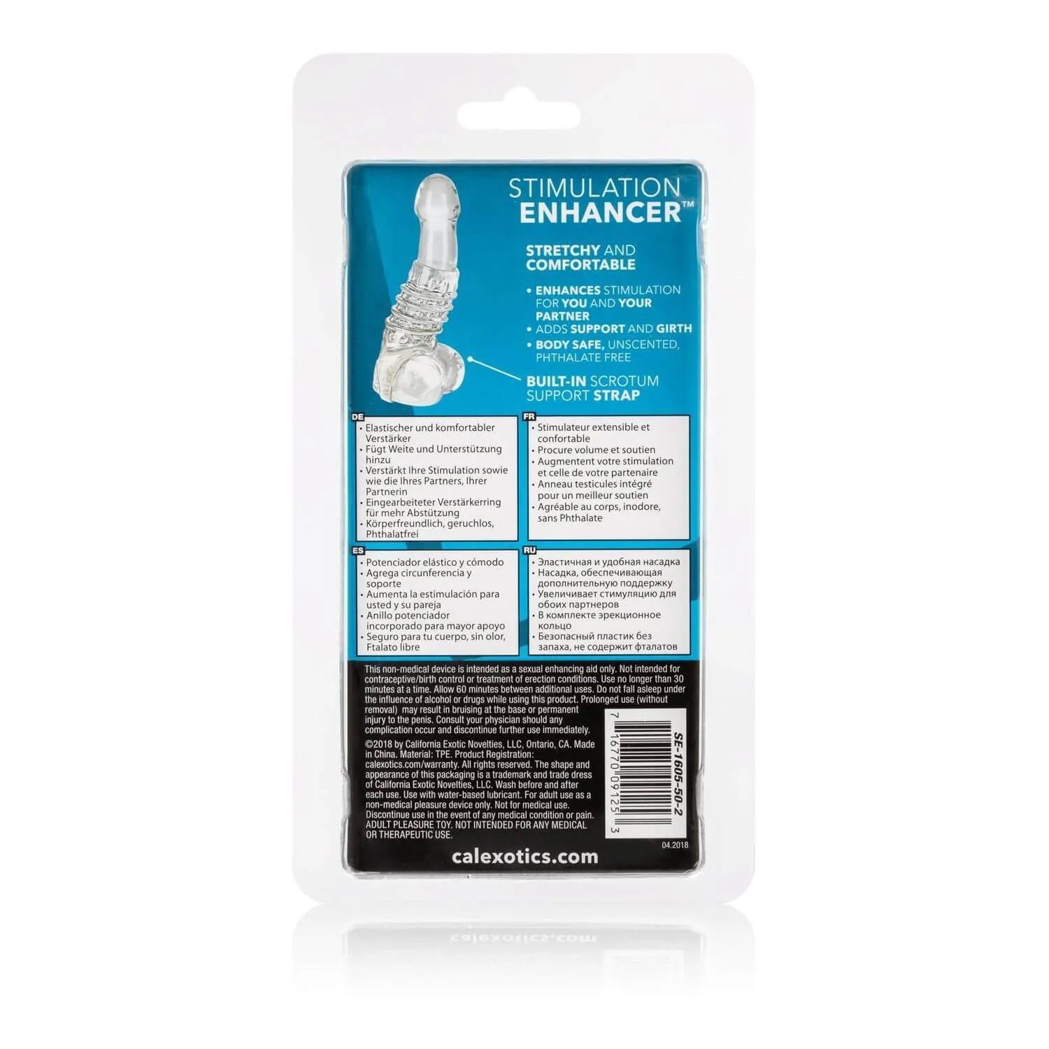 Хорошо тянущаяся и невероятно мягкая на ощупь насадка Stimulation Enhancer от бренда California Exotic Novelties идеально подойдет для мужчин, желающих продлить время интимной близости и подарить своей партнерше новые ощущения. Насадка увеличит толщину пениса, а ребристый рельеф и пупырышки на ее поверхности обеспечат дополнительную стимуляцию интимных зон. На ее конце есть специальное колечко, надеваемое на мошонку. Оно не только будет удерживать насадку на месте, но и позволит избежать преждевременной эякуляции.