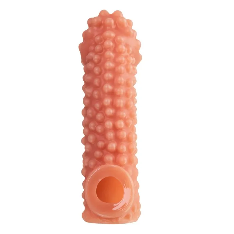 Просто выбирайте более интересный вам рельеф и форму насадки и наслаждайтесь вместе. Насадка очень эластичная, имеет бугорки и рельеф по всей поверхности, для стимуляции эрогенных зон партнера, увеличивает толщину головки и ствола пениса. Специальное круглое отверстие у основания позволяет надежно фиксировать насадку на члене без лишних усилий.