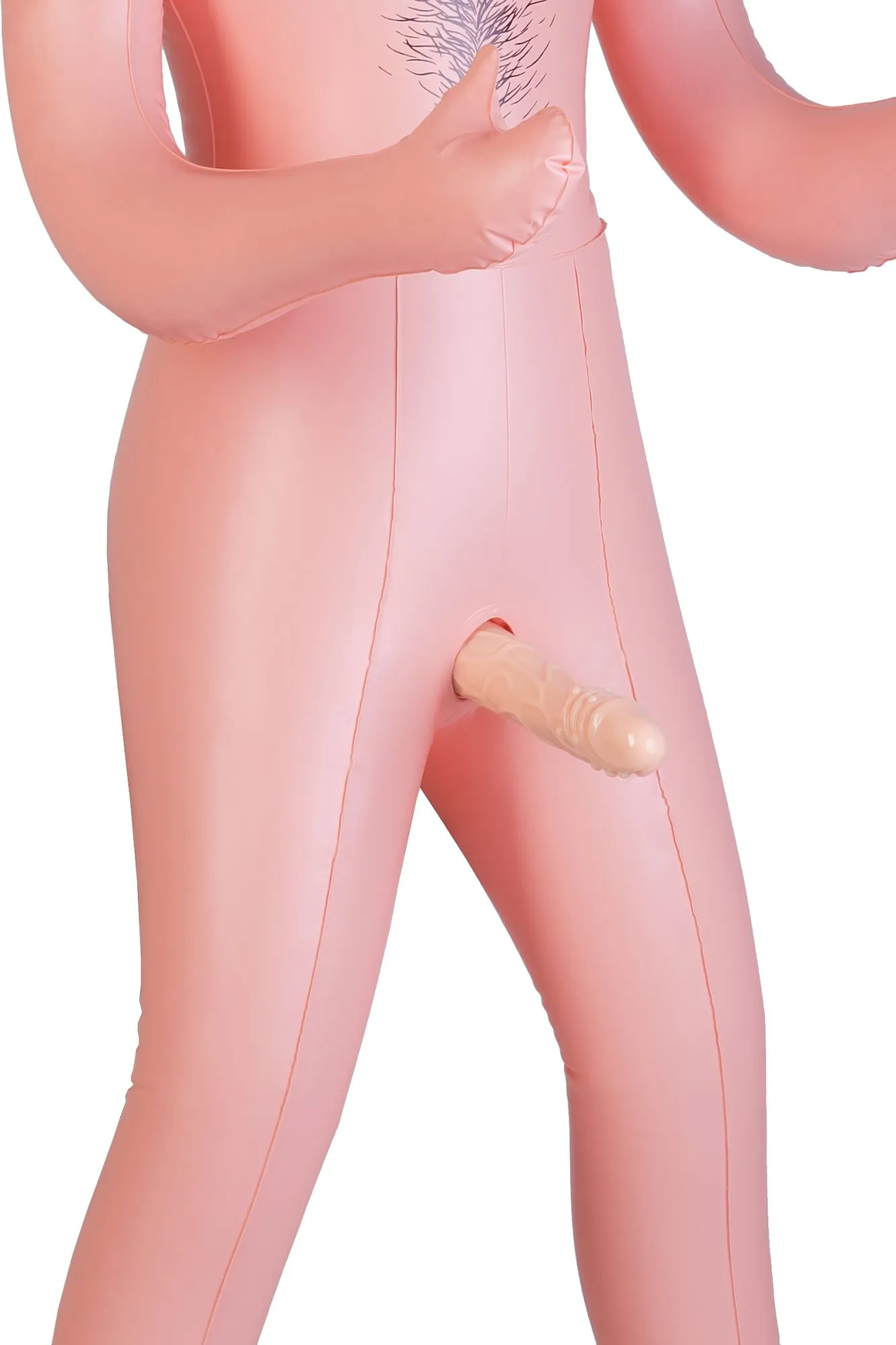 Этот страстный пассивный партнёр с волосатой грудью готов исполнять любые ваши желания. Между ног жгучего надувного брюнета расположено отверстие для любимой секс-игрушки — вибратора, фаллоимитатора. Имеется и анальное отверстие. Да, эта кукла действительно готова к любым экспериментам! Рост 160 см.