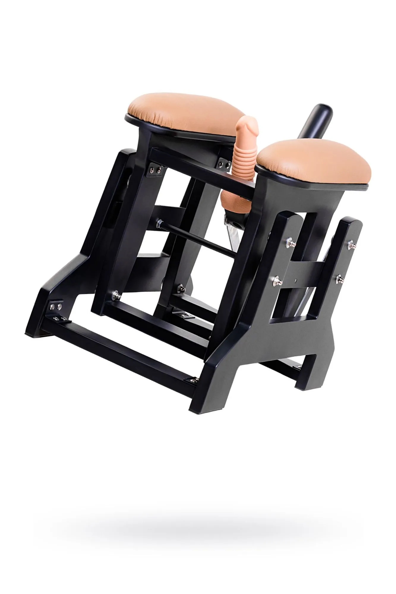 Принцип работы этого секс-тренажёра напоминает секс на несущемся галопом скакуне. Воплотить в реальность такой сценарий крайне сложно, но только не с этим приспособлением: раскачиваясь взад и вперёд, удерживая и нажимая на ручку, можно контролировать скорость, глубину и частоту вхождения фаллоса! Вагинальное проникновение рельефным фаллоимитатором (16,5 см) или анальное с помощью пробки (16,5) — этот тренажёр знает толк в интимных упражнениях. И, что немаловажно, секс-машина имеет адаптер для сменных фаллоимитаторов, что позволяет устраивать интимные встречи с другими насадками. Положительной особенностью приспособления является и то, что оно работает очень тихо, без проводов, а также имеет небольшой вес. Всё для того, чтобы от приятного процесса ничто не отвлекало!
