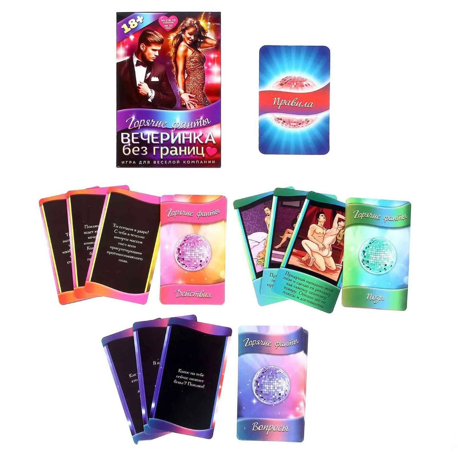 На вечеринке существует только одно правило: выполнять задания, вытягивая карточки. Отбросьте скромность и отдайтесь своим желаниям! Откровенные вопросы раскроют вас с новой стороны, раскрепощающие задания «на выпивание» поднимут градус веселья. Колода «Позы» заслуживает отдельного внимания: вам предстоит изображать позы из Камасутры с другими участниками игры, чтобы все догадались, о какой позе идет речь. Снимать одежду не обязательно… Возбудите своё воображение!