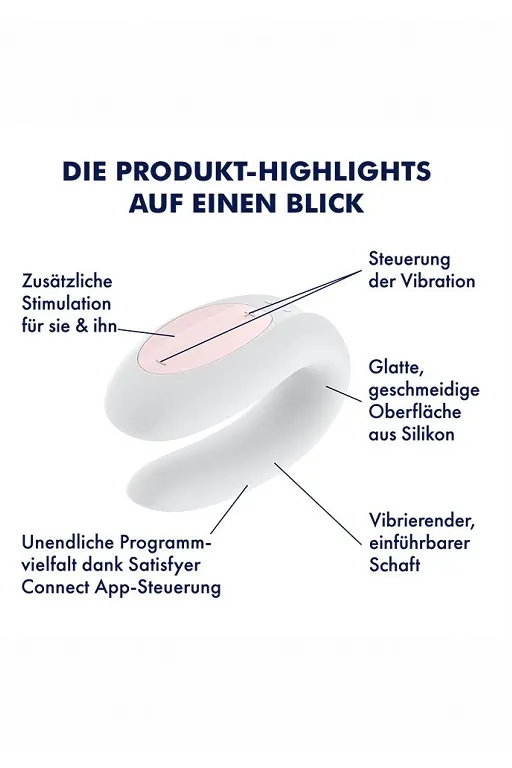 Благодаря эргономичному дизайну Satisfyer Double Joy имеет U-образную форму, плотно прилегающую к интимным зонам и обеспечивающую интенсивную вибрацию. Он имеет два мотора по одному в каждом конце, один из которых предназначен для стимуляции влагалища, второй для стимуляции клитора. Изготовленный из медицинского силикона стимулятор обладает гладкой, приятной на ощупь поверхностью.
