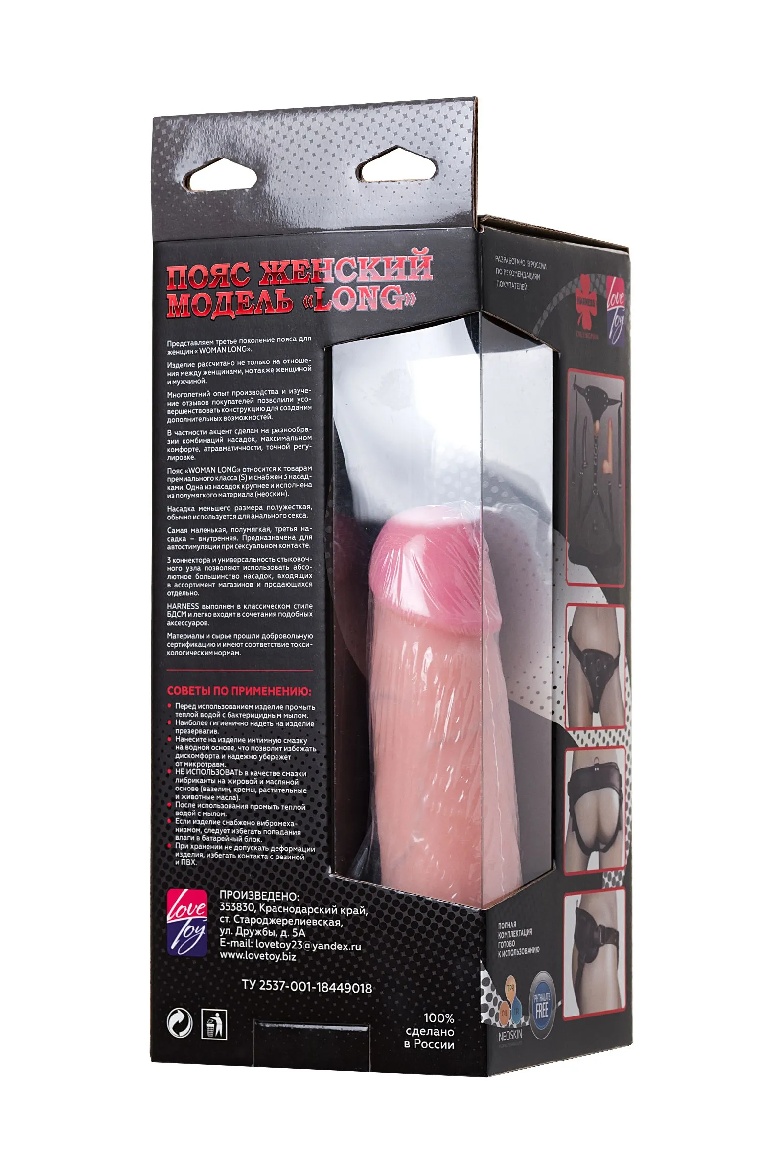 Товар является оригинальной авторской разработкой. Все права принадлежат «LOVETOY» Россия. Аналоги на рынке в настоящий момент отсутствуют. В чем особенность и ПРЕИМУЩЕСТВА этого харнесса? Это вариант «А», третье, самое «продвинутое» и совершенное поколение поясов для женщин, разработанное с учетом рекомендаций врачей и покупателей. Предполагается использование между женщинами или женщиной и мужчиной. Комплект насадок состоит из трех фаллоимитаторов. Внутренний сделан из атравматичной кибер-кожи на каркасе, передающим стимулирующее воздействие на клитор и вход во влагалище. Четыре отверстия позволяют регулировать эту насадку вне зависимости от комплекции и анатомических особенностей. Внутренний, вагинальный фаллоимитатор можно использовать одновременно с анальной насадкой, которая фиксируется на свободном отверстии (отдельно можно приобрести насадку подходящего размера из ассортимента «LOVETOY».) Внешних насадок две.
