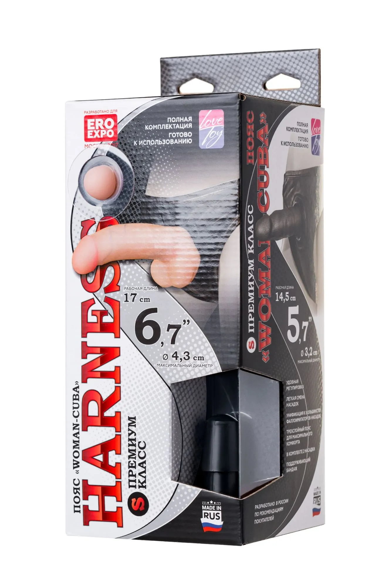Трусики для ЖЕНЩИН. Премиум класс «S» Товар является оригинальной авторской разработкой. Все права принадлежат «LOVETOY» Россия. Аналоги на рынке в настоящий момент отсутствуют. В чем особенность и ПРЕИМУЩЕСТВА этого харнесса? Это вариант «C» третьего, самого «продвинутого» и совершенного поколения поясов для женщин, разработанное с учетом рекомендаций врачей и покупателей. Предполагается использование между женщинами или женщиной и мужчиной. Комплект насадок состоит из двух фаллоимитаторов. Полужесткий, тонкий , платинового цвета , с маленькой головкой фаллоимитатор максимально подходит для анального секса. (размеры 14,5 см. тощина 3,2 см.) Фиксация анальной насадки может быть двумя способами : платформа этого фаллоимитатора крепится в отверстие и удерживается скрытым резиновым кольцом и (или) с помощью бобышки- коннектора . Внутри трусиков скрыта конструкция из строп и неопрена, дающая жесткость и непожвижность при регулировке и затягивании. В ней и фиксируется коннектор. Данные решения по конструктиву применены только в этом страпоне и абсолютно оригинальны. Но есть еще одна, радикально другая по свойствам насадка!! Она выполнена из очень мягкого и нежного материала «НЕОСКИН» на эластичной полужесткой основе. Этот фаллоимитатор устанавливается только с помощью пластмассового коннектора. ( Если вы используете реалистик с присоской, то фиксация на поясе обеспечивается так же как и анальной насадки – кольцом.) Коннектор при этом надо снять (схема действий с коннектором показана на клапане коробки). Атравматичная, бархатистая поверхность придает особенный комфорт отношениям. Предназначена в основном для вагинального контакта с партнершей. Рабочий размер 17,0 см. ( 6,7 дюймов), толщина или диаметр 4,3 см. ( рабочий размер – это расстояние от кончика головки до мошонки). Реалистик имеет изгиб. За счет этого его можно вращать на бобышке, менять направление и даже ласкать «мошонкой» клитор. Имеет характеристики эрегированного мужского пениса. (отдельно можно приобрести любую подходящую насадку из ассортимента «LOVETOY».) Сам пояс выполнен в классическом, строгом стиле БДСМ , но для комфортного использования обладает рядом преимуществ. Так, боковые регуляторы натягивают сразу весь харнесс и делают его монолитным без люфта в передней части. Мягкая бейка по краям и мягкий, вспененный материал между слоями кожи гарантируют бережное применение. Страпон надевается сразу , как обычные трусики на резинке, что весьма удобно . Качественная, синтетическая кожа легко стерилизуется антисептиками и моется бактерицидным мылом.Универсальность стыковочных узлов позволяют использовать абсолютное большинство насадок, входящих в ассортимент магазинов и продающихся отдельно. Часто этот комплект берут как приложение к ЛЮБОМУ эротическому костюму, когда требуется не только флирт перед близостью, но и функциональные возможности во время секса. Да, почти забыли: отверстие сзади должно будить фантазию и импровизацию..!
