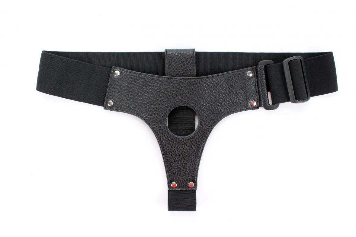 Трусики для страпона, изготовлены из кожи. Крепятся при помощи широких эластичных резинок (размер легко меняется) Диаметр отверстия для страпона - 4 см