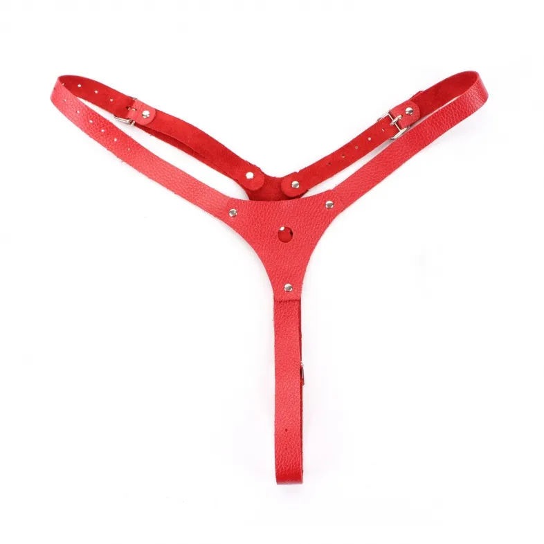 Красный трусики со штырьком для насадок. Размер регулируется ремешками (ширина 1,7 см), которые крепятся на бёдрах. Состав- натуральная кожа, металл, полимерные материалы.