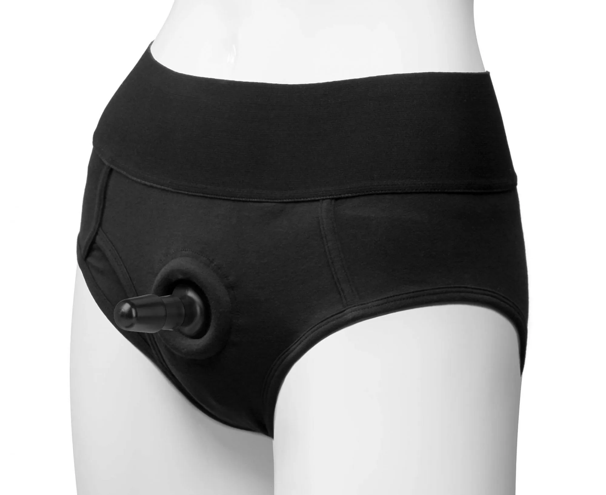 Трусики сделаны из хорошо тянущегося хлопка, их комфортно носить, легко снимать и надевать. Спереди есть специальный штырек для насадки, который подойдет для любой игрушки с системой Vac-U-Lock. Эти трусики по-настоящему универсальны - у них есть крепление O-Ring диаметром 45 мм. и два кармашка, идеальных для хранения Ваших любимых вибропуль или чего-то другого.