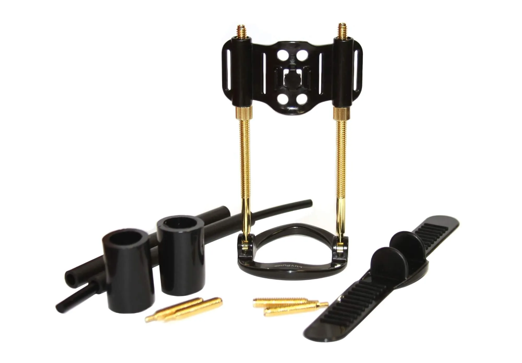 Прибор состоит из упорного кольца, направляющей штанги и фиксатора. Крепится он при помощи мягкого ремешка или жгута. В процессе использования надо регулировать штанги, чтобы под воздействием силы натяжения орган начал растягиваться в длину. Благодаря своей конструкции он подходит для разных размеров пениса. Увеличение члена при помощи экстендера никак не скажется на Вашей интимной жизни - Вы сможете как и раньше заниматься сексом.