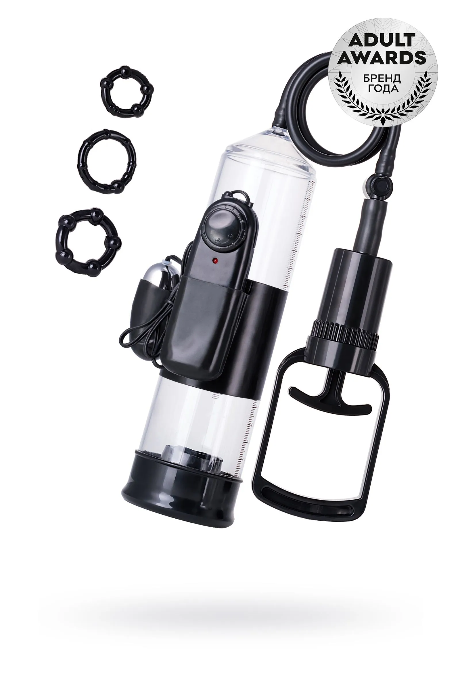 A-Toys Vacuum pump — серия помп, созданная для мужчин, которые стремятся к новым победам и точно знают чего хотя. Регулярное применение помп Atoys способствует увеличению размеров полового члена и усиливает эрекцию. Высокое качество материалов, используемых при производстве помпы, сделают применение изделия приятным и безопасным. Помпа оснащена мощным насосом, а также механизмом вибрации, которое крепится к помпе с помощью эластичного материала с кармашком для виброяичка и управляется выносным пультом.