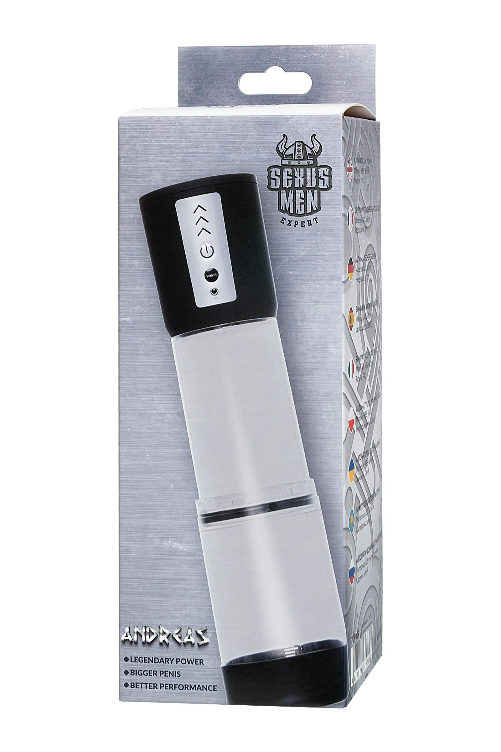 Автоматическая складная помпа на аккумуляторе Andreas от Sexus® Men – для самых требовательных мужчин, которые стремятся к легендарной мужской силе. Сексуальное могущество для мужчины – не только крепкая и надежная эрекция, но и внушительный размер орудия. С автоматической помпой Andreas серии Sexus® Men Expert возможно достичь впечатляющих результатов в области увеличения размеров пениса, занимаясь пенбилдингом по эффективной программе тренировок. Дополнительное преимущество помпы Andreas в том, что она складная – ее удобно брать в путешествия, чтобы не делать перерывов в тренировках. Для тренировки, а также чтобы подготовить себя к длительному и яркому сексу, вставьте свой пенис в колбу и откачайте воздух. С помпой Andreas не нужно прилагать усилий для создания вакуума, она сделает это за вас комфортно и безопасно. Помпа имеет 3 уровня давления, которые регулируются кнопкой включения на колбе с LED-подсветкой режимов. Другая кнопка постепенно сбрасывает вакуум. Помпа не имеет ограничений при откачке воздуха и требует самостоятельного прекращения понижения давления с помощью кнопки Valves. Благодаря отрицательному давлению увеличивается приток крови к половому члену. Прозрачный ABS-пластик позволяет наблюдать как пенис набирает силу и увеличивается в размере. А измерительная шкала помогает отслеживать результаты прямо в процессе. Для достижения ощутимых результатов рекомендуются систематические занятия по программе эффективного тренинга, которая входит в комплект. Регулярное использование вакуумной помпы Andreas от Sexus® Men позволяет: последовательно увеличить длину и диаметр полового члена, делая его более внушительным и прокаченным сделать эрекцию более стабильной, крепкой и продолжительной повысить сексуальную выносливость и половое влечение поднять уверенность в своих возможностях и совершать новые сексуальные подвиги понизить вероятность образований аномальных фиброзных тканей Помпа Andreas комплектуется программой тренировок, запасным уплотнительным кольцом и USB-проводом для зарядки. Порядок работы помпы: Перед использованием помпы соберите ее, плотно соединив пазы. Включение: коротким нажатием на кнопку «включение» помпа включается сразу на 1 уровень откачки воздуха, загорается индикатор первой скорости. Повышение уровней: коротким нажатием на кнопку «включение». Понижение уровней: нет Отключение: следующее после третьего уровня нажатие на кнопку «включение» отключает помпу. Сброс давления: кнопкой «VALVES» сбрасывается давление в колбе. После использования и для транспортировки разберите помпу.