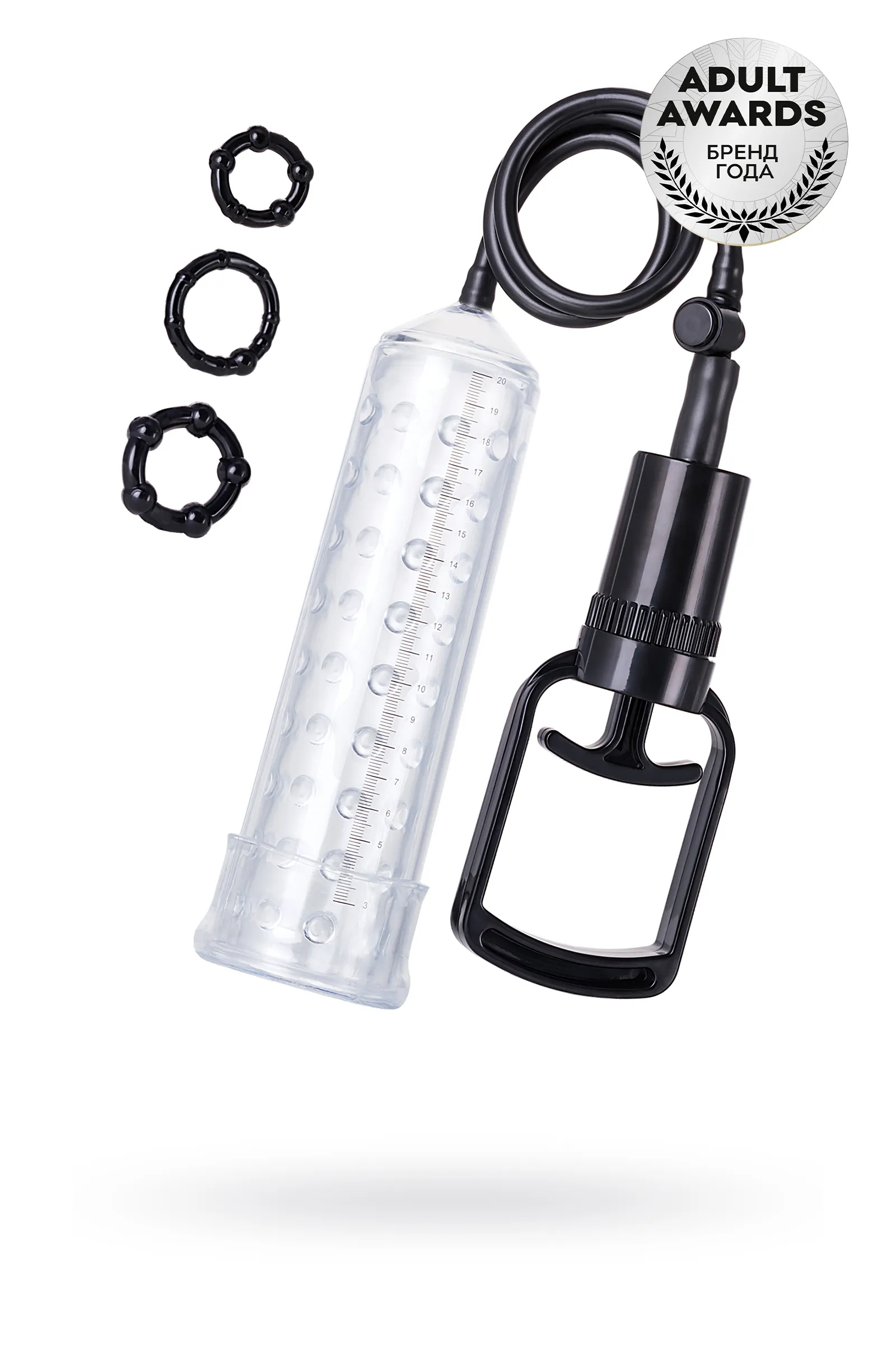 A-Toys Vacuum pump — серия помп, созданная для мужчин, которые стремятся к новым победам и точно знают чего хотя. Регулярное применение помп Atoys способствует увеличению размеров полового члена и усиливает эрекцию. Высокое качество материалов, используемых при производстве помпы, сделают применение изделия приятным и безопасным. Помпа оснащена мощным насосом. Кроме того, отличительной особенностью данной помпы является съемная мягкой вставка с рельефом в виде шариков, что позволяет дополнительно массировать пенис. Мин. диаметр 5, макс.диаметр 5,6