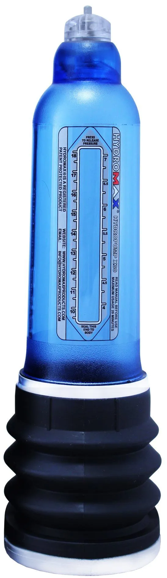 Гидропомпа Hydromax X30 подходит при толщине пениса в эрегированном состоянии до 4,5 см и длине до 17,5 см. Максимальная сила давления внутри помпы - 0,55 бар.