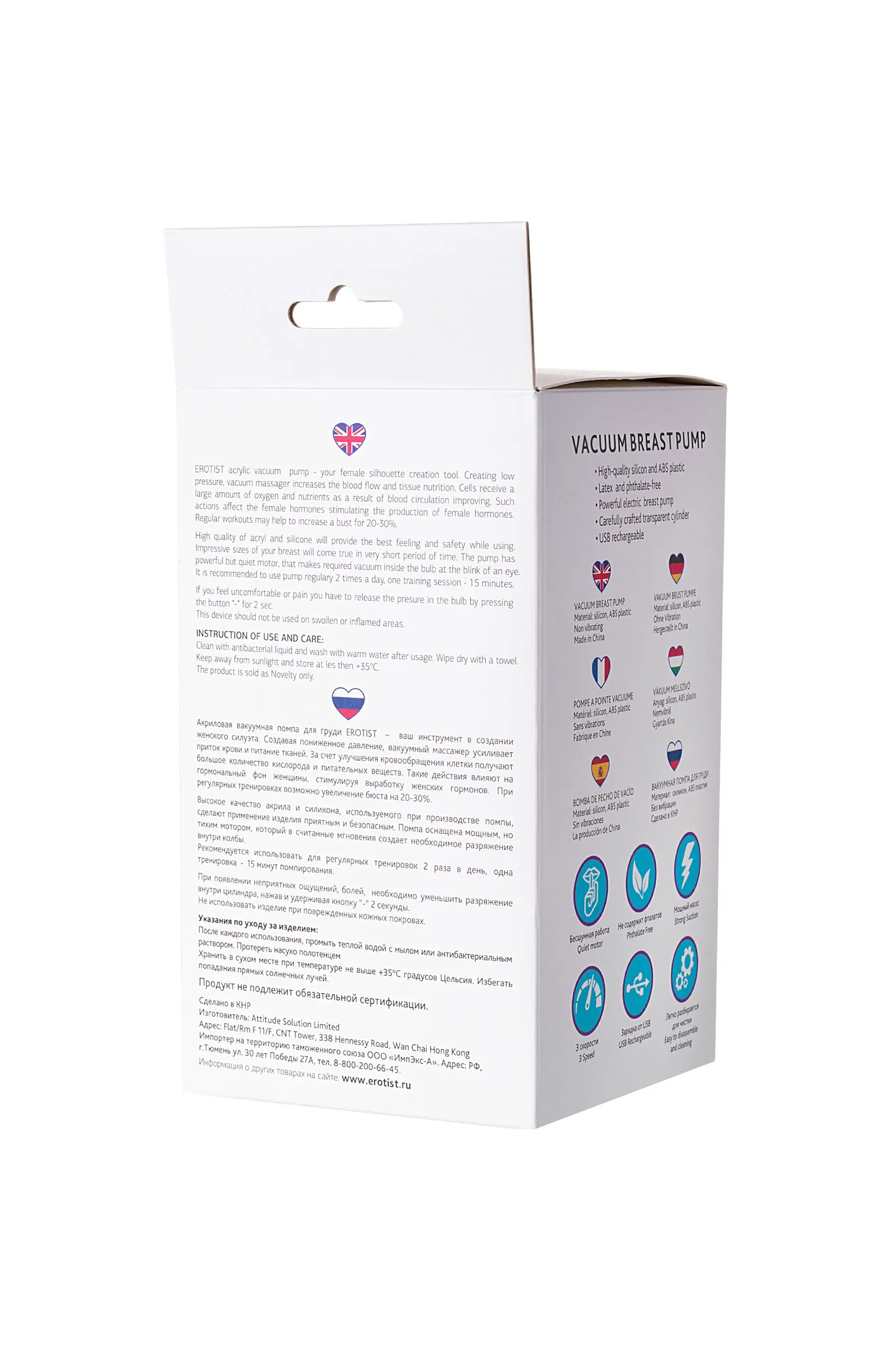 Акриловая вакуумная помпа для груди EROTIST – ваш инструмент в создании женского силуэта. Создавая пониженное давление, вакуумный массажер усиливает приток крови и питание тканей. За счет улучшения кровообращения клетки получают большое количество кислорода и питательных веществ. Такие действия влияют на гормональный фон женщины, стимулируя выработку женских гормонов. При регулярных тренировках возможно увеличение бюста на 20-30%. Высокое качество акрила и силикона, используемого при производстве помпы, сделают применение изделия приятным и безопасным. Помпа оснащена мощным, но тихим мотором, который в считанные мгновения создает необходимое разряжение внутри колбы. Рекомендуется использовать для регулярных тренировок 2 раза в день, одна тренировка - 15 минут помпирования. При появлении неприятных ощущений, болей, необходимо уменьшить разряжение внутри цилиндра, нажав и удерживая кнопку “-“ 2 секунды. Не использовать изделие при поврежденных кожных покровах. Рабочая длина 14 см.