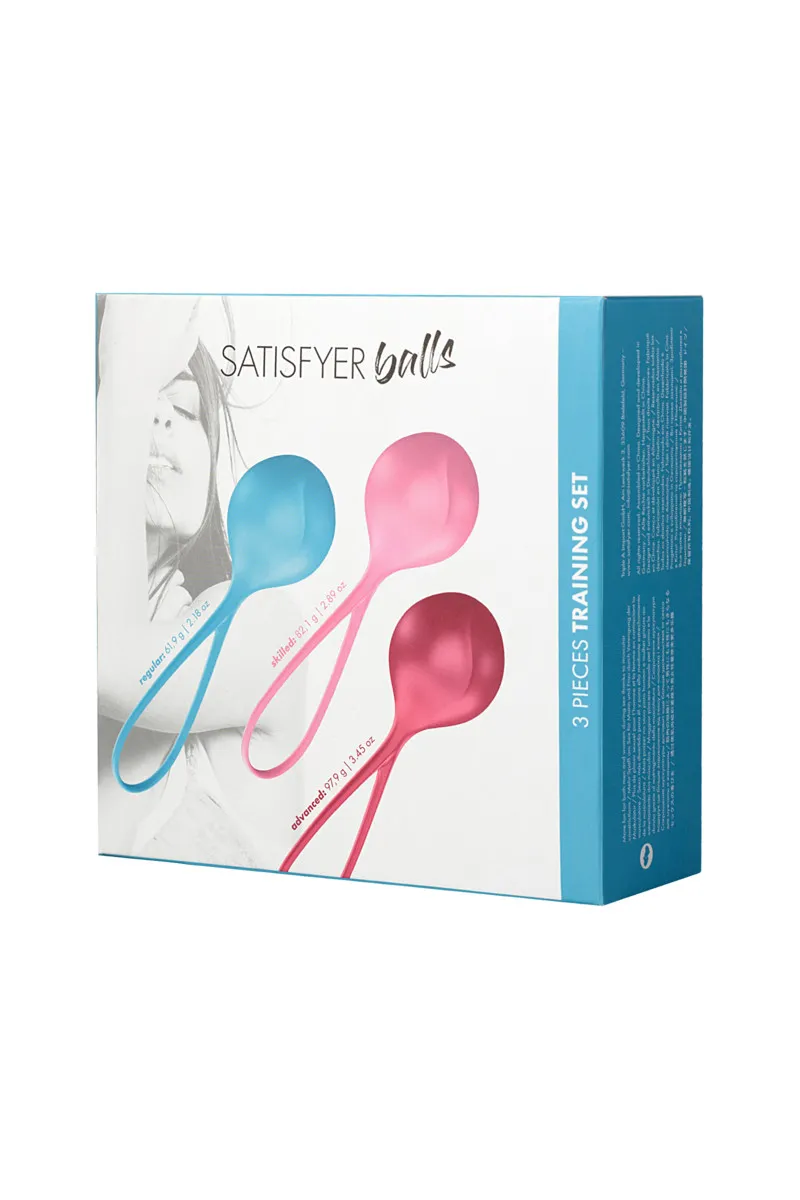 Набор из трех вагинальных шариков Satisfyer разного веса. Они изготовлены из нежнейшего медицинского силикона. Имеют удобную длинную ручку-петлю для безопасного использования. Все три шарика имеют одинаковый размер: 3,8 см в диаметре, рабочая длина - 4,5 см, а длина вместе с петлей - 16,6 см. В этом наборе самый легкий шарик весит 61,9 г (обычный), средний - 82,1 г (опытный), а самый тяжелый - 97,9 г (расширенный). Всего несколько минут тренировок каждый день позволят вам взять свою любовную жизнь в свои руки! Укрепите свои мышцы и подарите себе взрывные оргазмы.