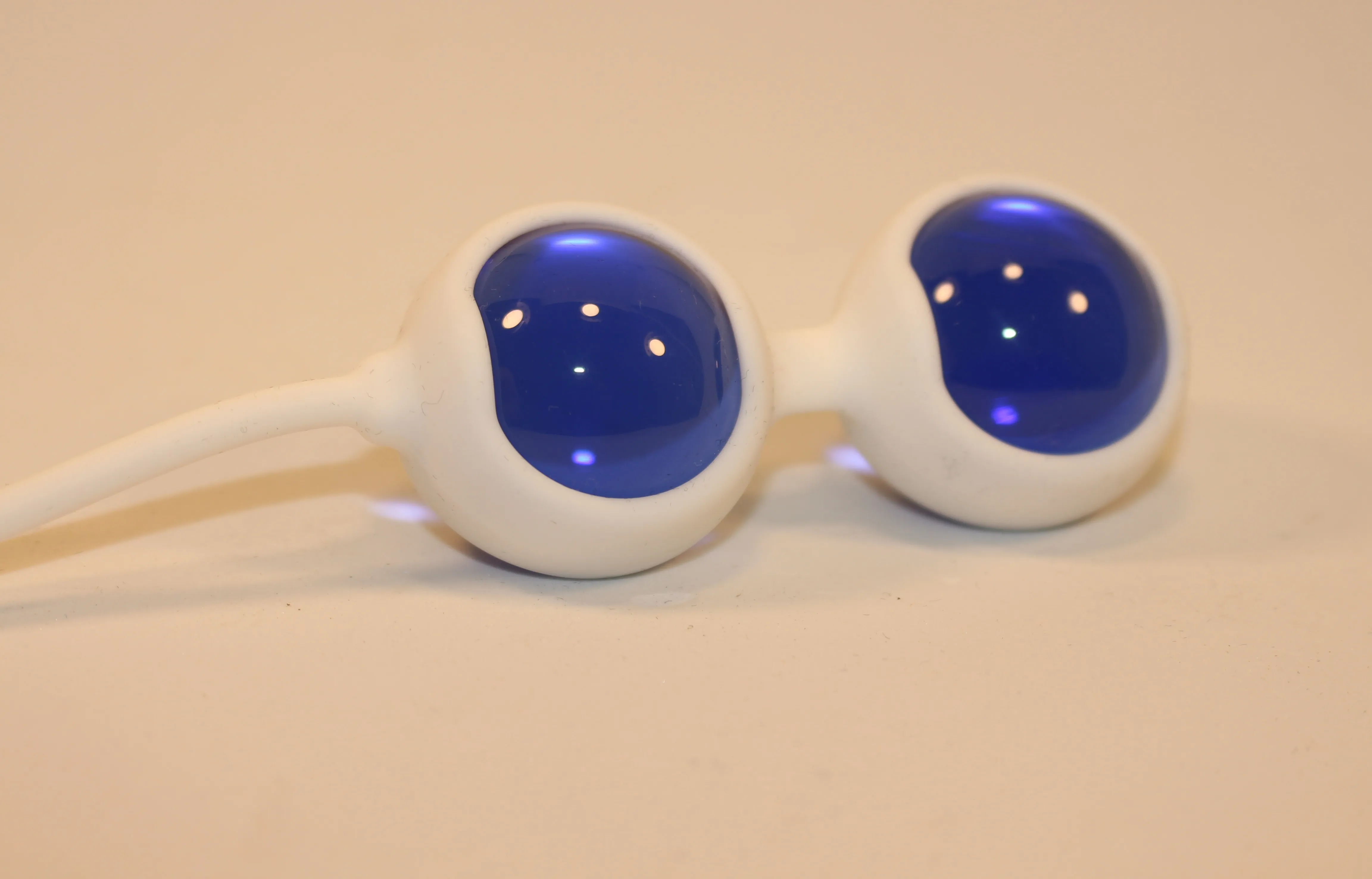 Насыщенно синего цвета вагинальные шарики для тренировки интимных мышц. Вагинальные шарики используют для сексуального удовольствия. Петля позволяет легко извлекать шарики. Характеристики: цвет – белый/синий, материал – силикон, стекло, общая длина – 16 см, рабочая длина- 7,5 см, диаметр шариков 2,8, диаметр шариков в силиконовой вставке– 3,3 см, производитель – Китай. Упаковка: картонная коробка с принтом.