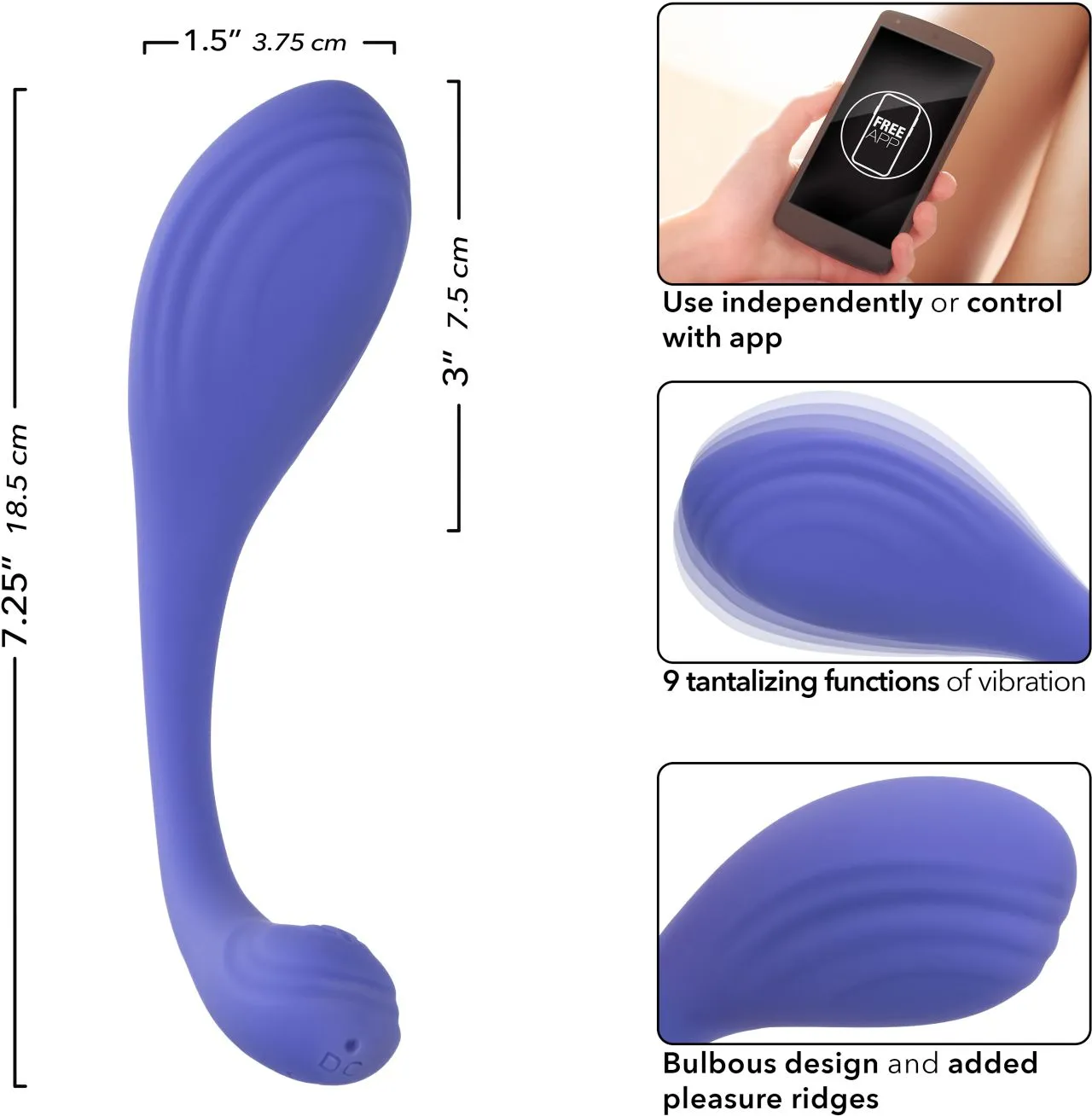 Размер стимулятора: 7,5 см x 3,75 см.