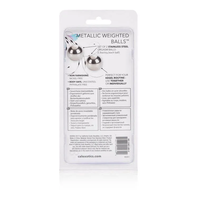 Вагинальные шарики Metallic Weighted Orgasm Balls созданы для тренировки мышц тазового дна и чувственной стимуляции. При каждом Вашем движении шарики будут перекатываться внутри, даря Вам легкие ощущения вибрации. При регулярных тренировках с шариками Вы не только сможете поддерживать свои интимные мышцы в тонусе, но также и усилите свою чувствительность и сможете быстрее достигать оргазма.