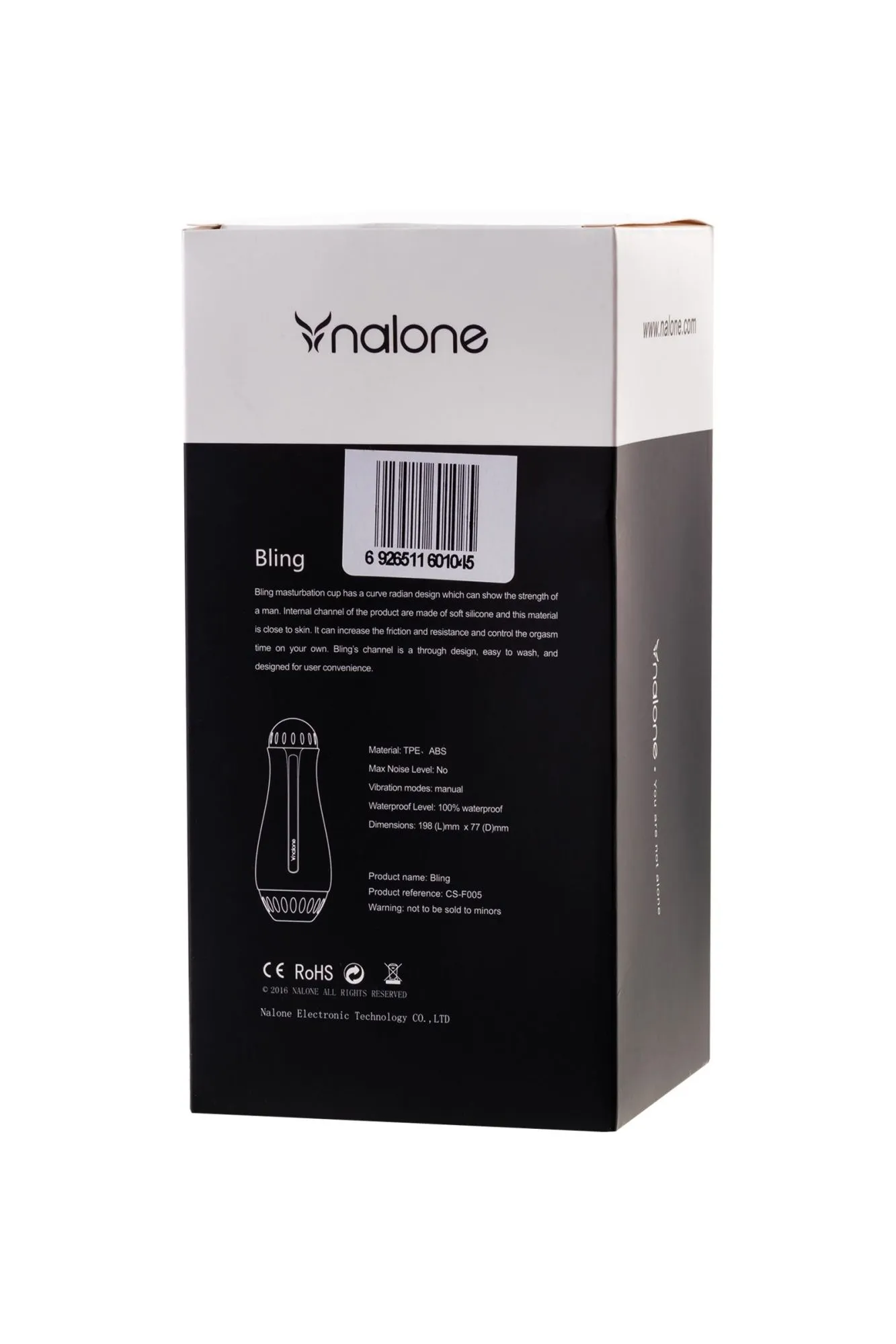 —Мастурбатор нереалистичный Nalone Bling, TPE, чёрный, 19,8 см