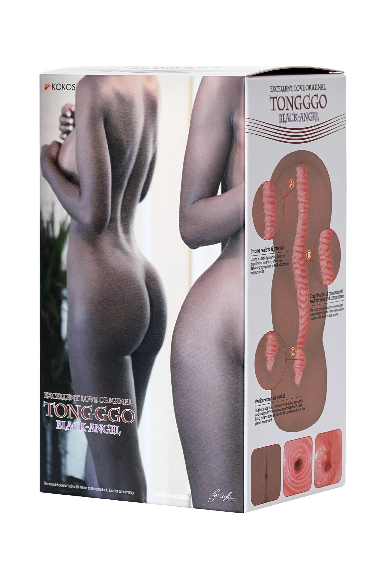 —Мастурбатор реалистичный KOKOS TONGGGO Black Angel с двойным слоем TPR, телесный, 16 см