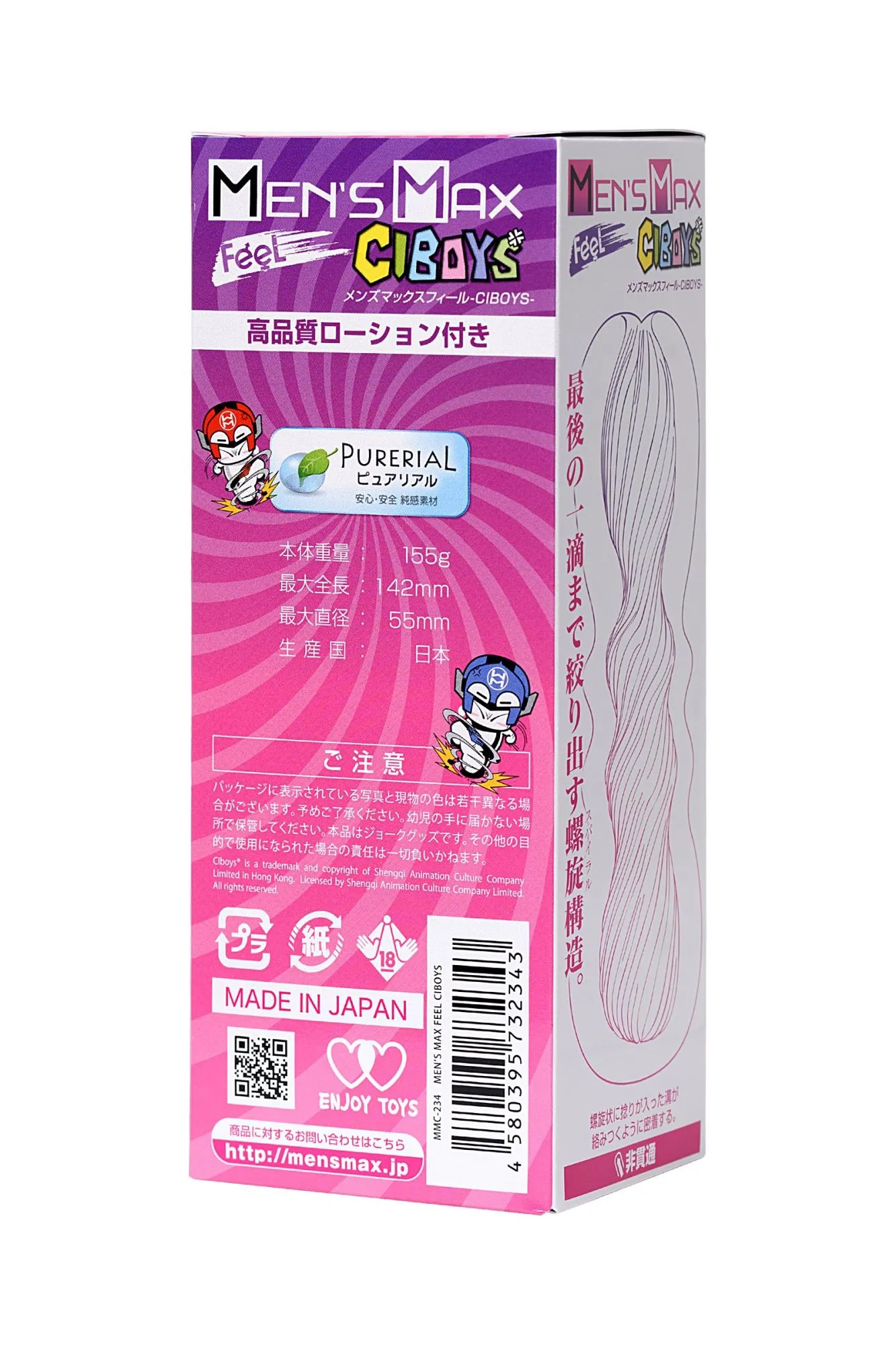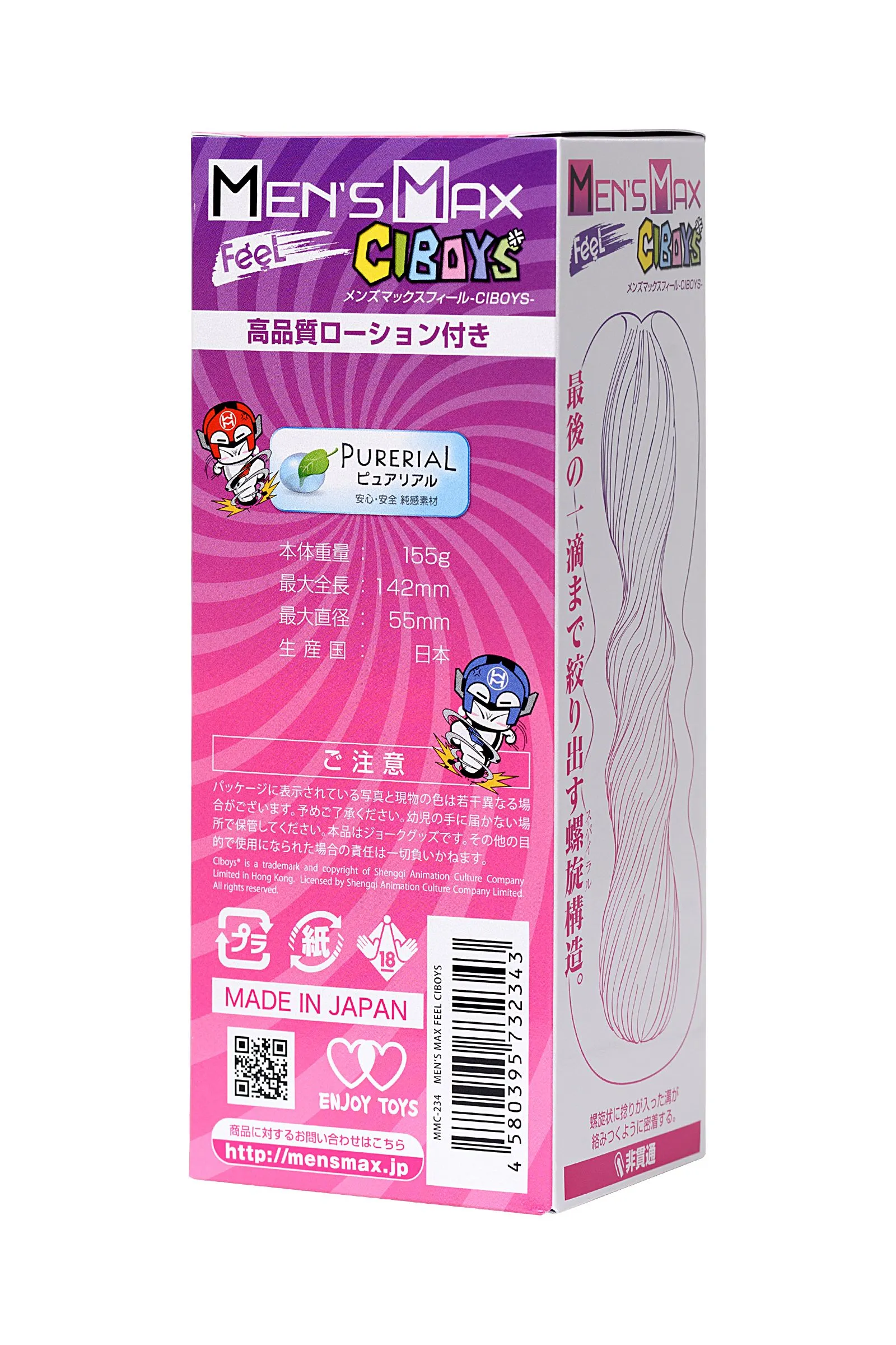 Приятный снаружи, мощный внутри — японский нереалистичный мастурбатор MensMax Feel CIBoys в точности передает характер знаменитых персонажей C.I.BOYS, которые и вдохновили дизайнеров на его создание. Инновационный материал PureReal максимально приближен к настоящей коже и содержит в себе тысячи ультрадисперсных пузырьков, которые придают игрушке невероятную эластичность. 12 ощутимых складок, закрученных в спираль, плотно обхватывают пенис и массируют его по всей длине, молниеносно доводя до сексуальной разрядки. Эргономичный дизайн обеспечивает комфорт даже во время интенсивных движений. Найдите свой эпицентр оргазма вместе с MensMax Feel CIBoys. Инструкция: Перед первым применением очистите мастурбатор тойклинером или теплой водой с мылом. Залейте в игрушку лубрикант из пакетика. После использования тщательно промойте и просушите. Храните девайс в прохладном темном месте в индивидуальной упаковке.