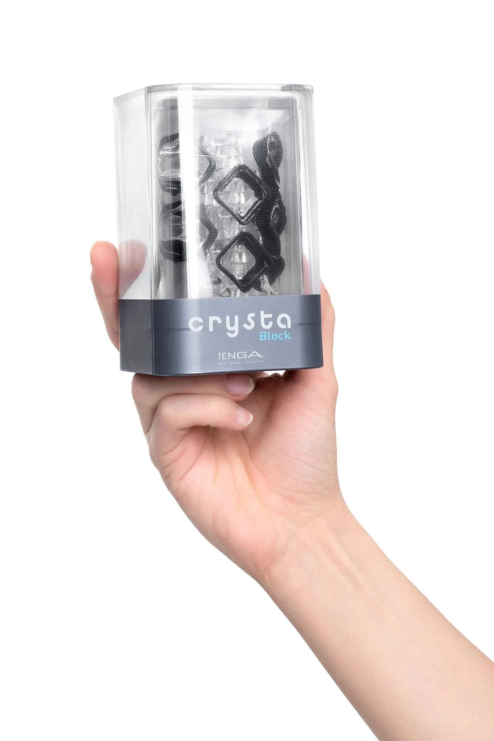 Функциональная форма и футуристичный дизайн делают коллекцию Tenga Crysta настоящим произведением искусства среди мужчских мастурбаторов. В динейке представлены три мастурбатора с различными рельефами. Текастура Block состоит из множества кубов разного диаметра, расположенных вдоль узкого входного канала в хаотичном порядке.
