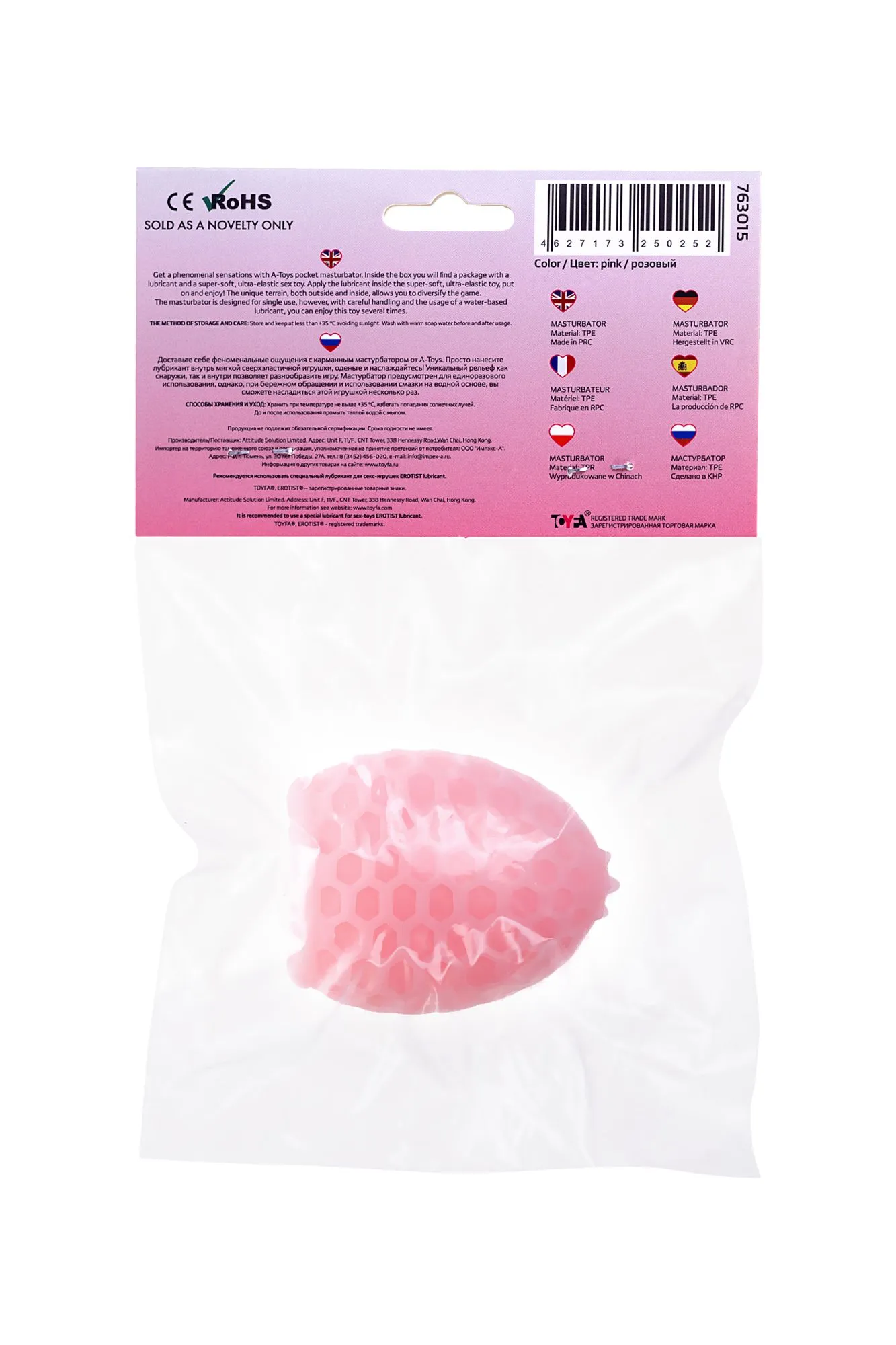 Доставьте себе феноменальные ощущения с карманным мастурбатором от A-Toys. Просто нанесите лубрикант внутрь мягкой сверхэластичной игрушки, наденьте и наслаждайтесь! Уникальный рельеф как снаружи, так и внутри позволяет разнообразить игру. Мастурбатор предусмотрен для единоразового использования, однако, при бережном обращении и использовании смазки на водной основе, вы сможете насладиться этой игрушкой несколько раз. Общая длина: 6 см Диаметр: 2,7 см Разный рельеф с обеих сторон