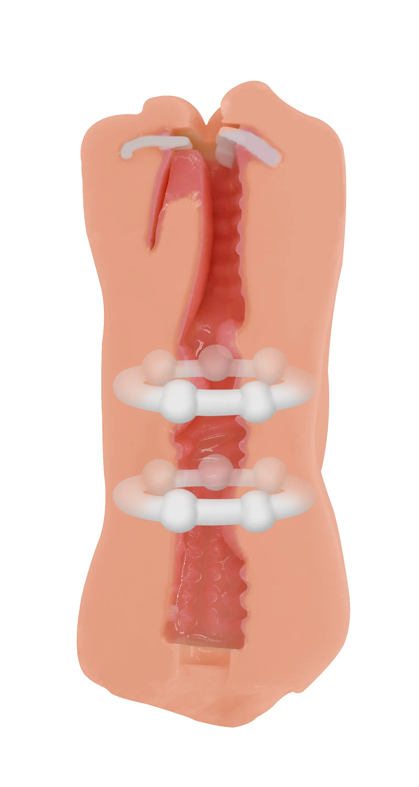Двойной мастурбатор эластичной текстуры, способен возбудить и довести до оргазма любого мужчину. Перед использованием рекомендуется добавить лубрикант. Он выполнен в виде двух любовных отверстий: вагины с мурашками на коже и женского ротика (раскрашенного вручную) с белоснежными зубками, подвижным язычком и гландами. Рельефная внутренняя текстура которой напоминает анатомическое строение девушки, и для создания которой применяется двойная заливка материала. Инновационная технология "Узкий Вход" обеспечит максимально плотный обхват и создаст ощущение сжатия вагинальными мышцами. Мастурбатор выполнен из TPR, безопасен для кожи, не содержит фталатов. Подойдет для любого размера. Общая длина – 15 см, ширина – 6 см, высота — 6,3 см, диаметр отверстия – 1 и 2,5 см.