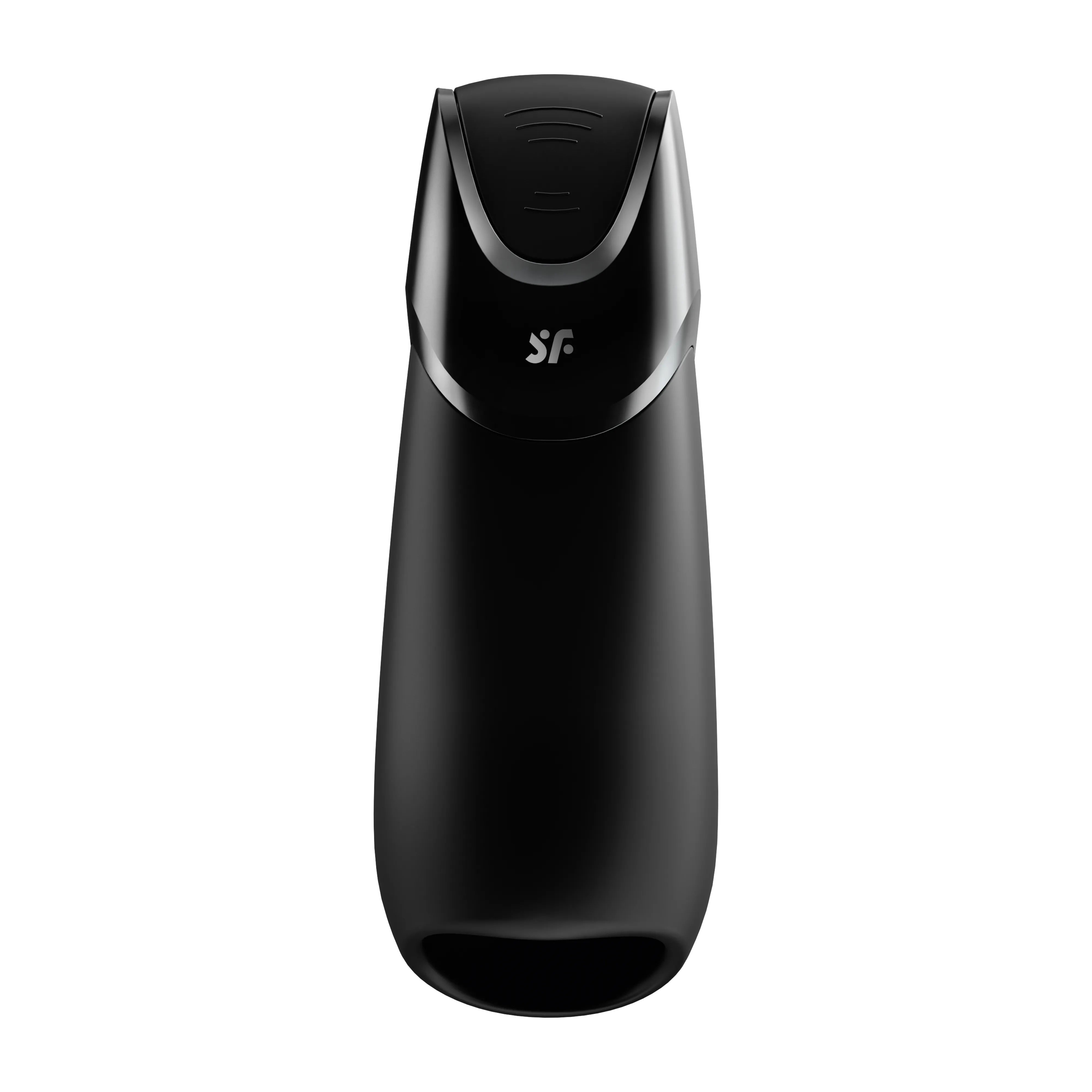 Стильный, черный мастурбатор идеально лежит в руке благодаря своим эргономичным изгибам. Имеет 14  режимов вибрации. В мастурбатор вставляется только верхняя, самая чувствительная часть пениса, поэтому он прекрасно подходит для прелюдии или идеального завершения. Его узкое отверстие выполнено из гигиеничного сверхмягкого силикона, что обеспечивает первоклассные возбуждающие ощущения.  Режимы удобно переключаются кнопками в верхней части игрушки и в официальном приложении Satisfyer. Заряжается с помощью USB, который входит в комплект. Водонепроницаемый. Материал: силикон.