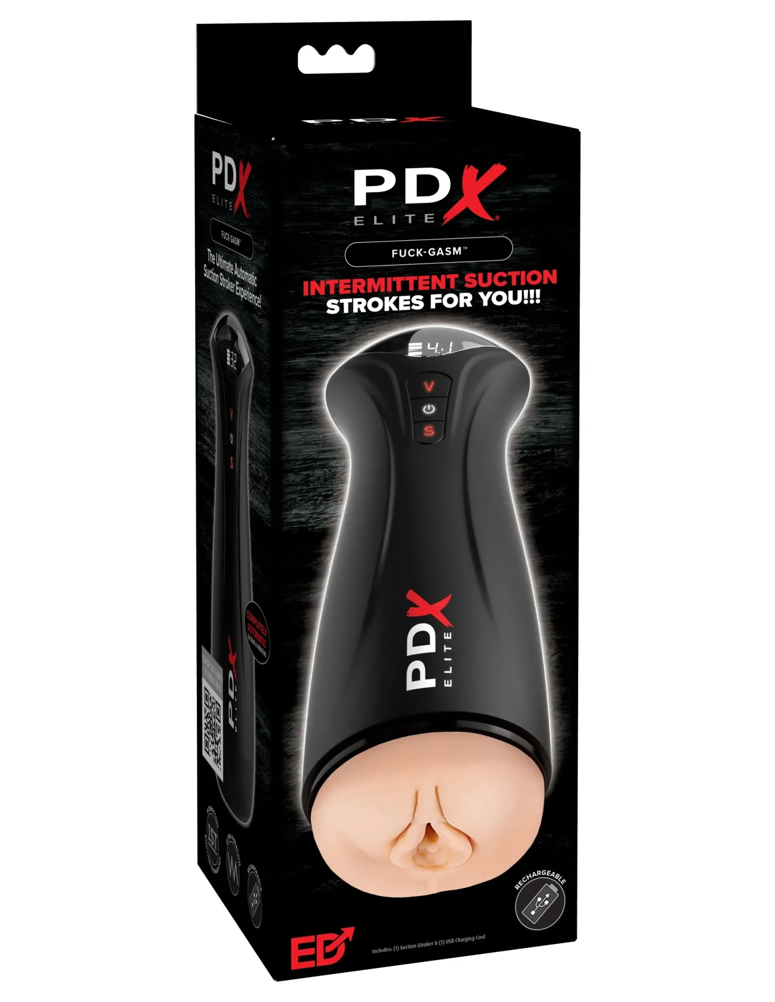 PDX ELITE Fuck-Gasm — мастурбатор с всасыванием и вибрацией (вес 0,7 кг). Прерывистое всасывание двигает член, текстурированный тоннель усиливает ощущения. Подходит для использования без рук.
