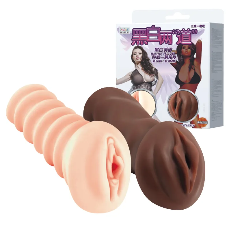 Два мастурбатора с вагинальным отверстием изготовлены в белом и шоколадном цвете. Имеют правдоподобные внутренние складки, которые приносят ощущение полноценного сексуального контакта за счет плотного облегания ствола пениса. Его рельефная внешняя поверхность обеспечивает очень высокую степень эргономичности – во время мастурбации она не выскользнет из рук и не испортит ощущений удовольствия. В комплект входит виброяйцо (5,5x2,5 см). Работает от 2АА батареек (нет в комплекте). Характеристики: общая длина- 14 см, ширина- 8 см, высота- 9 см, диаметр отверстия 0,5 см. Упаковка: картонная коробка с принтом.