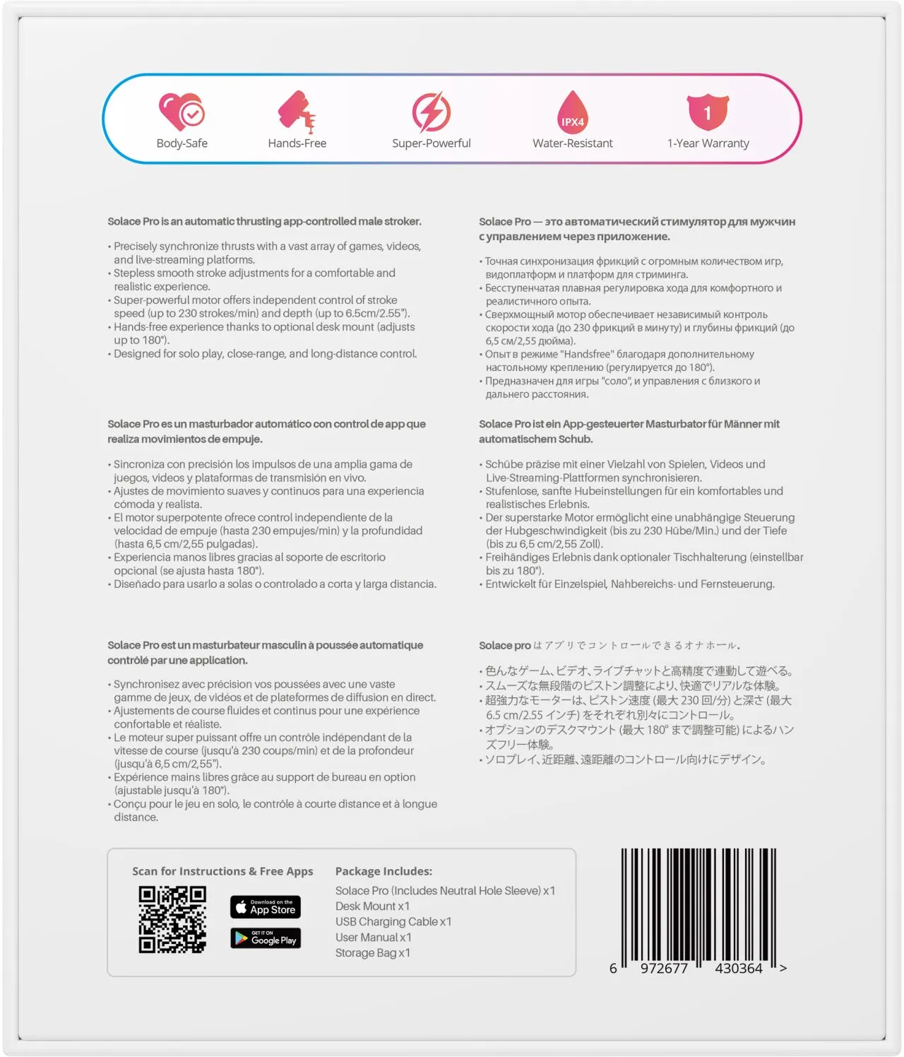Solace Pro — это технологичный мастурбатор, который выводит интерактивные игры на новый уровень. Сочетание искусственного интеллекта, мощных фрикций и VR-совместимости открывает новые горизонты в интимных наслаждениях и делает Solace Pro лучшим выбором для тех, кто хочет получить максимум от своей игрушки.